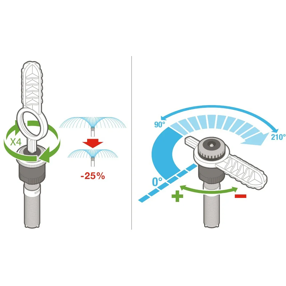 Rotační tryska MP2000-90, dostřik 4,9 - 6,4 m, 90° - 210°