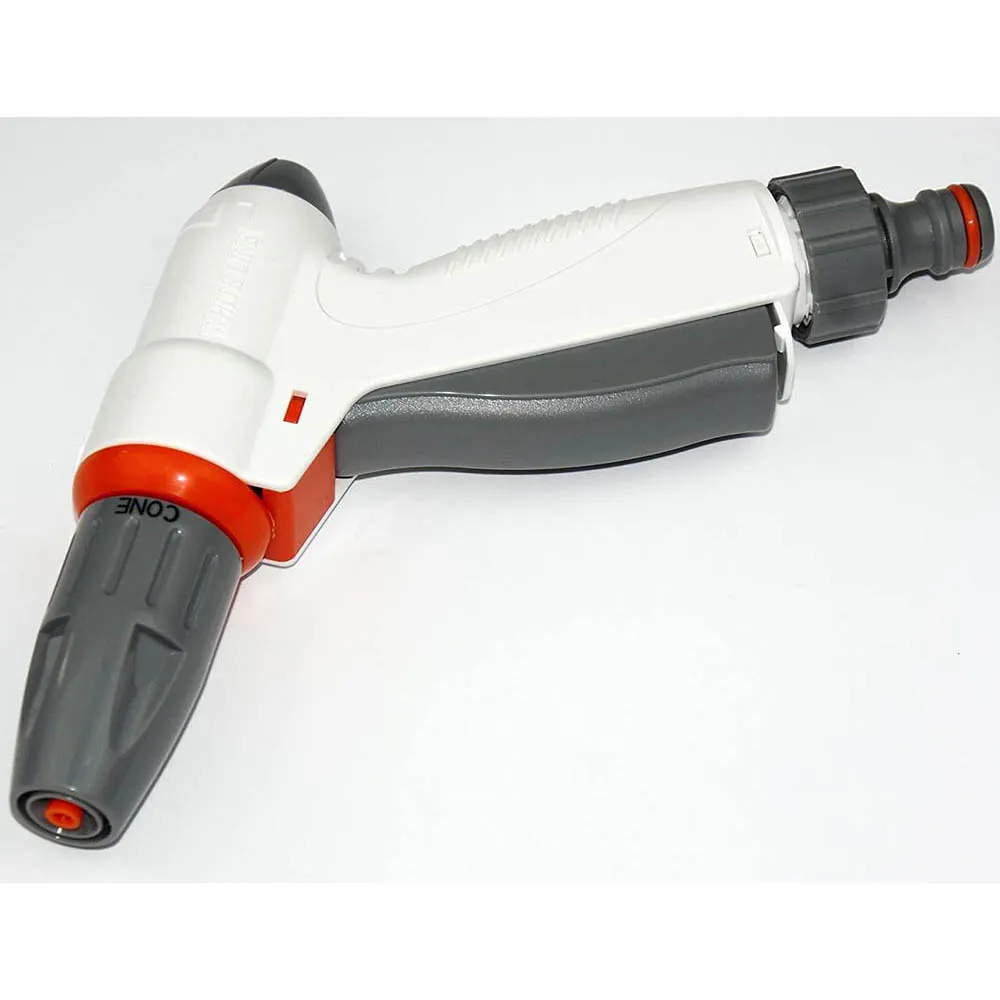 Multifunkční zavlažovací pistole Bradas WL-EN6T se třemi nastaveními průtoku vody a plynulou regulací tlaku je ideálním nástrojem pro zavlažování a čištění různých povrchů. Díky své lehké konstrukci z odolného ABS plastu se snadno používá a dlouho vydrží.