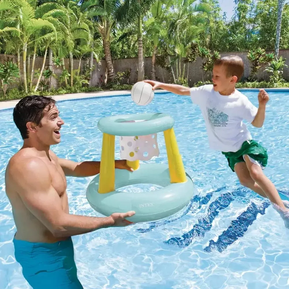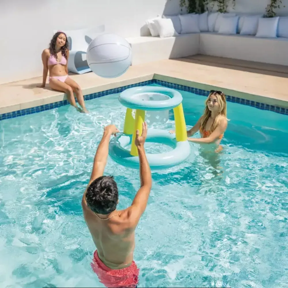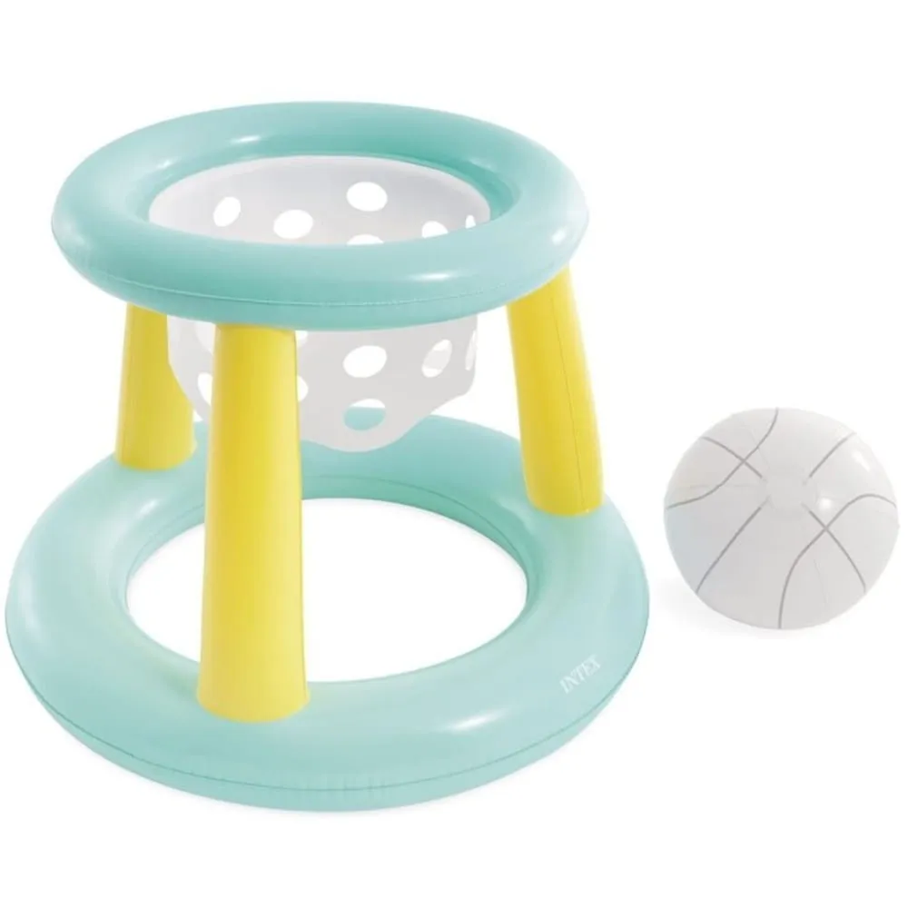 Nafukovací vodní basketbalový koš Intex je skvělým zpestřením letní pohody u bazénu. Umožní si zahrát basket přímo ve vodě, ať už jen tak pro zábavu, nebo formou malé rodinné soutěže. Plovoucí provedení je vhodné pro děti i dospělé.