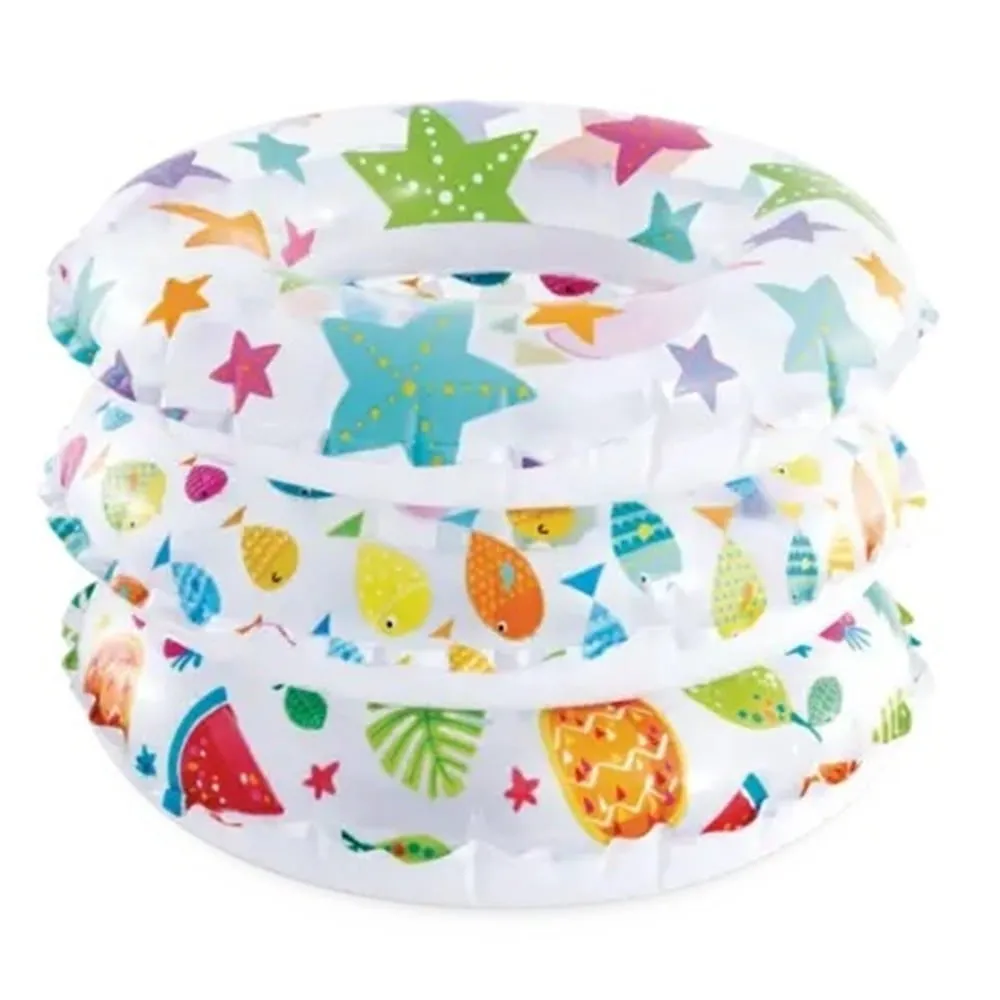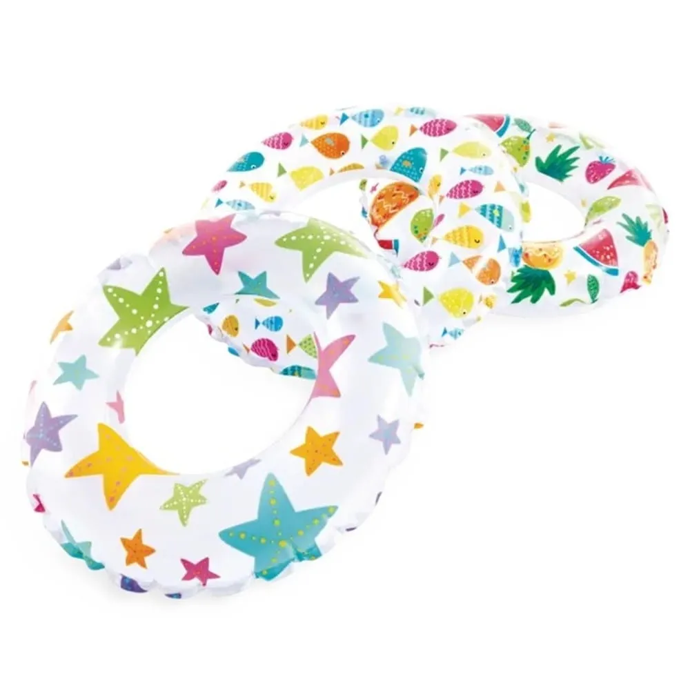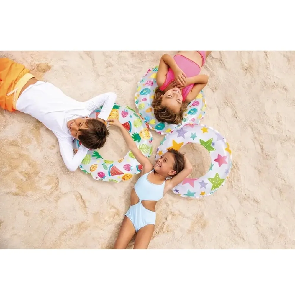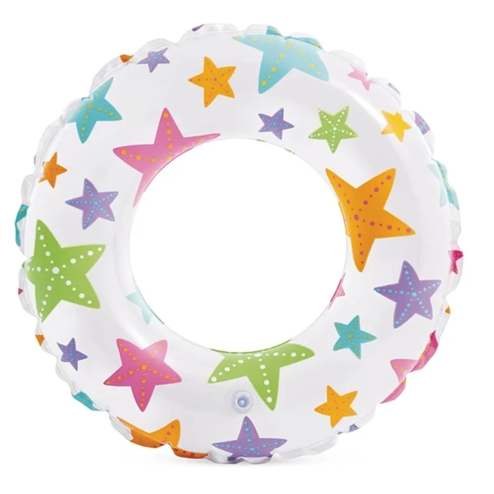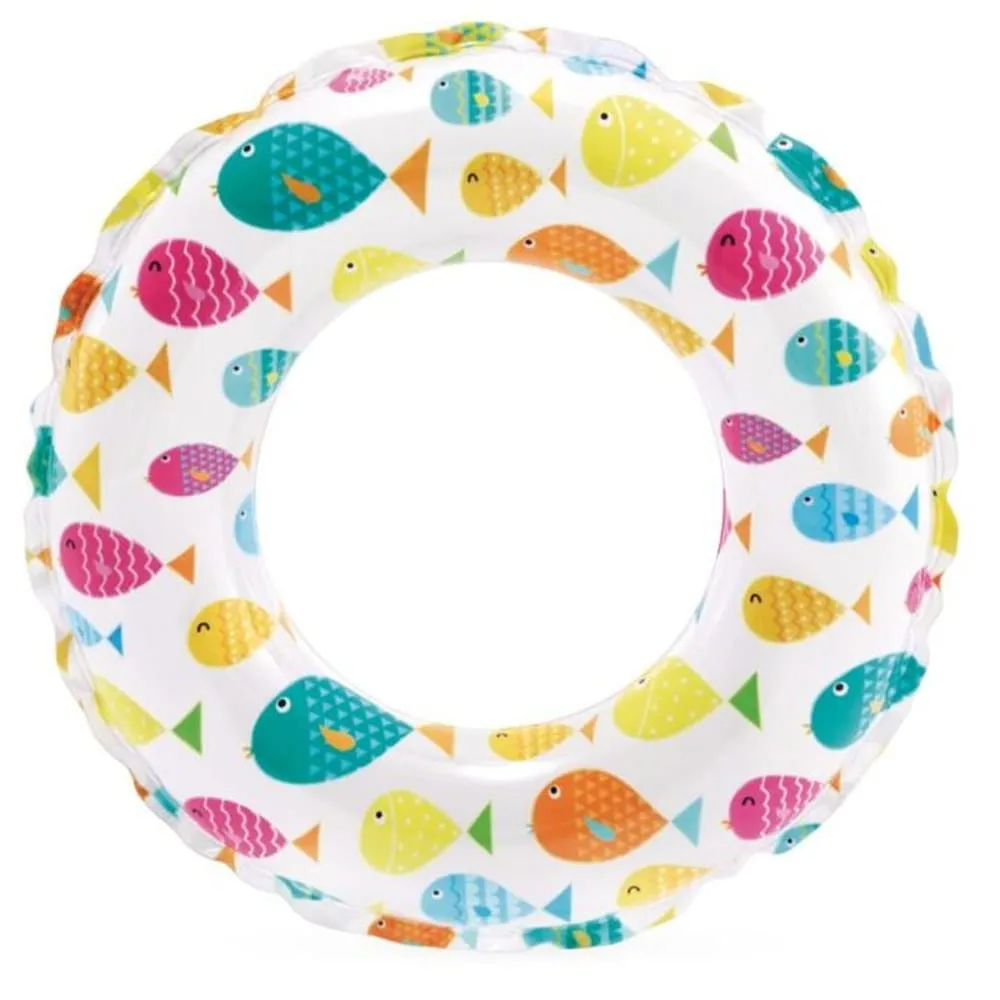 Nafukovací plavecký kruh Intex o průměru 51 cm je vhodný do bazénu, k jezírku i k moři. Veselý potisk působí hravě a zároveň zvyšuje viditelnost ve vodě.