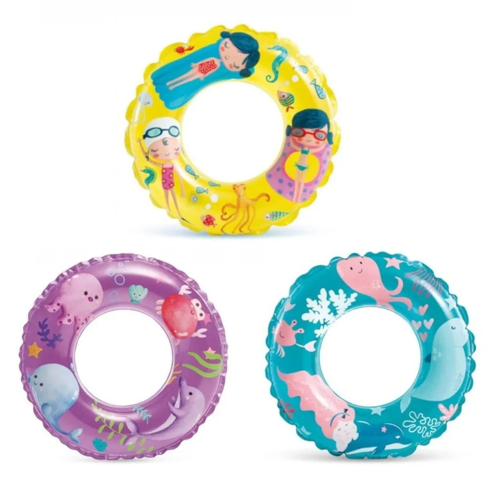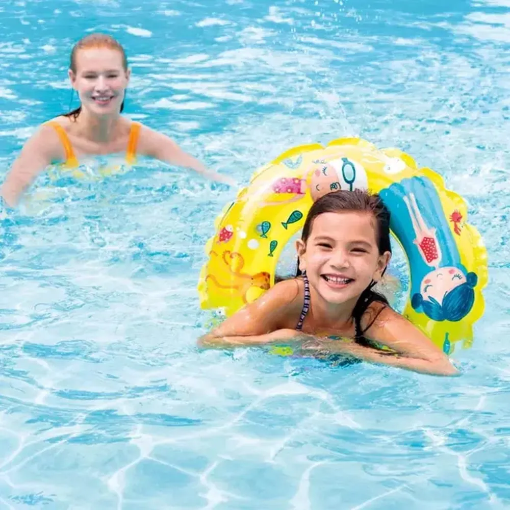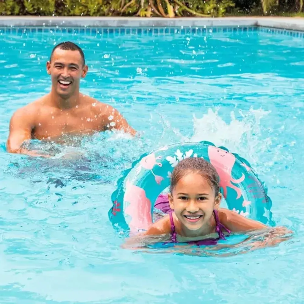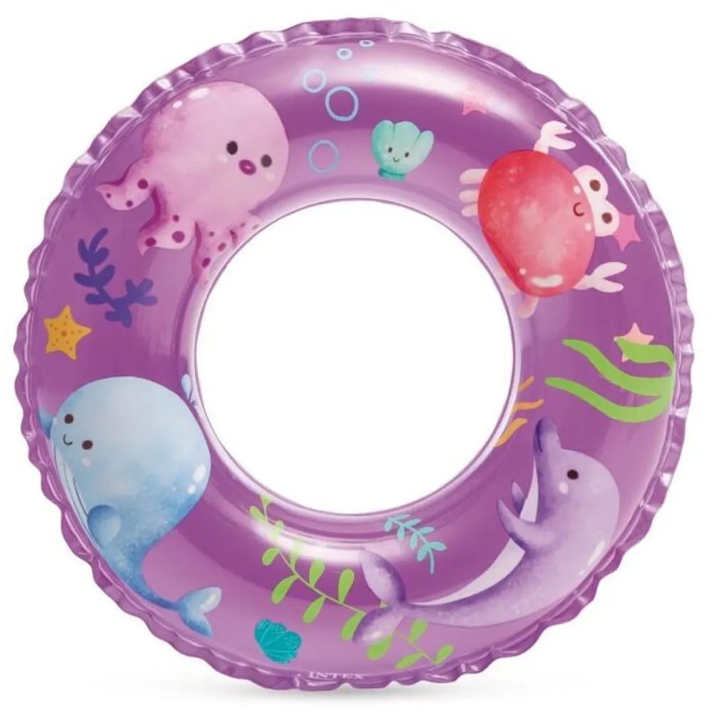Nafukovací plavecký kruh Intex o průměru 51 cm je vhodný do bazénu, k jezírku i k moři. Transparentní provedení s barevným potiskem působí hravě a zároveň zvyšuje viditelnost ve vodě.