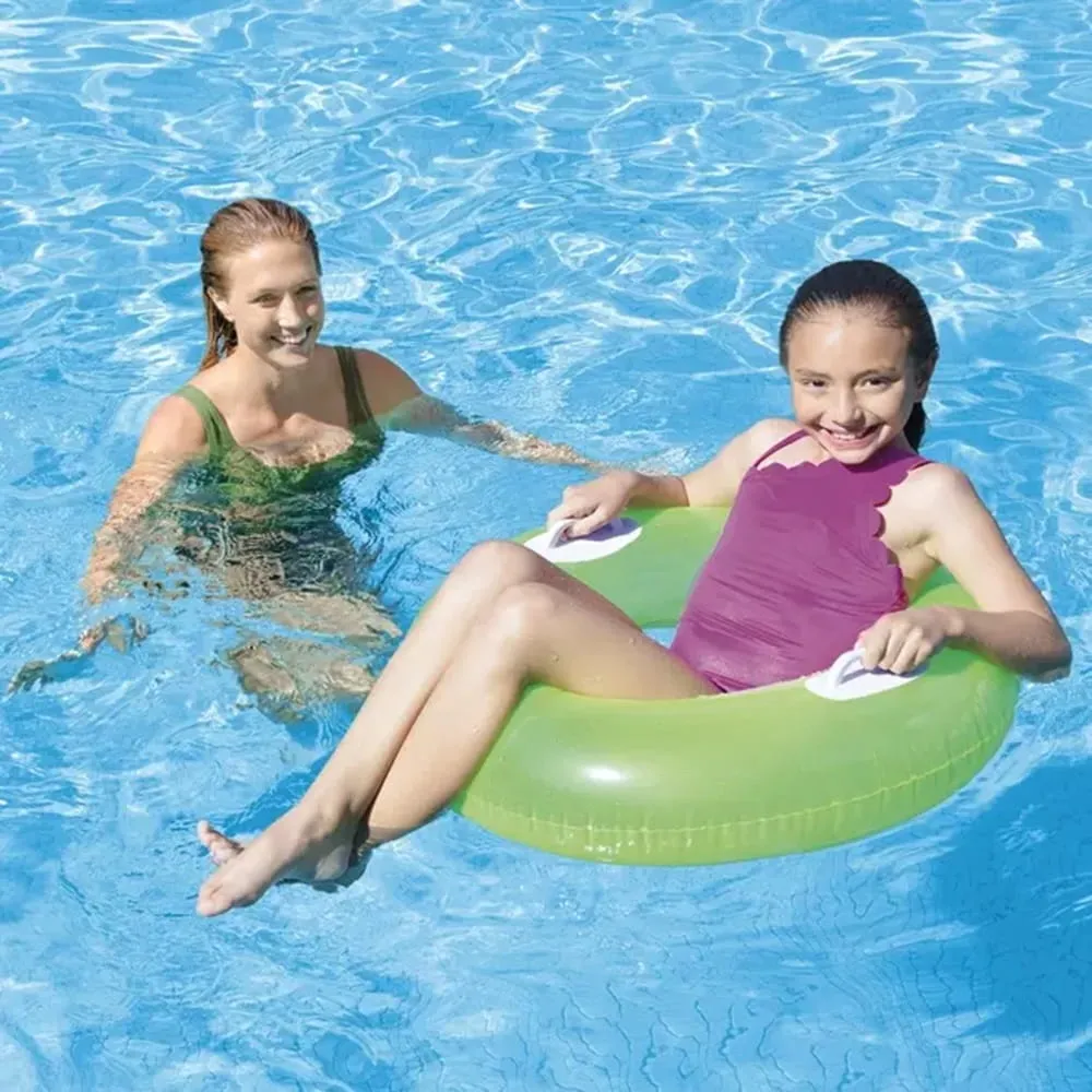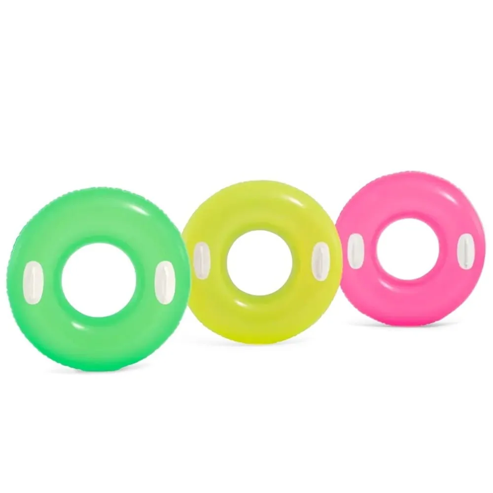Nafukovací plavecký kruh Intex o průměru 66 cm je vhodný do bazénu, k jezírku i k moři. Dvě držadla na každé straně zajistí pohodlnou manipulaci a barevné provedení zvyšuje viditelnost ve vodě.