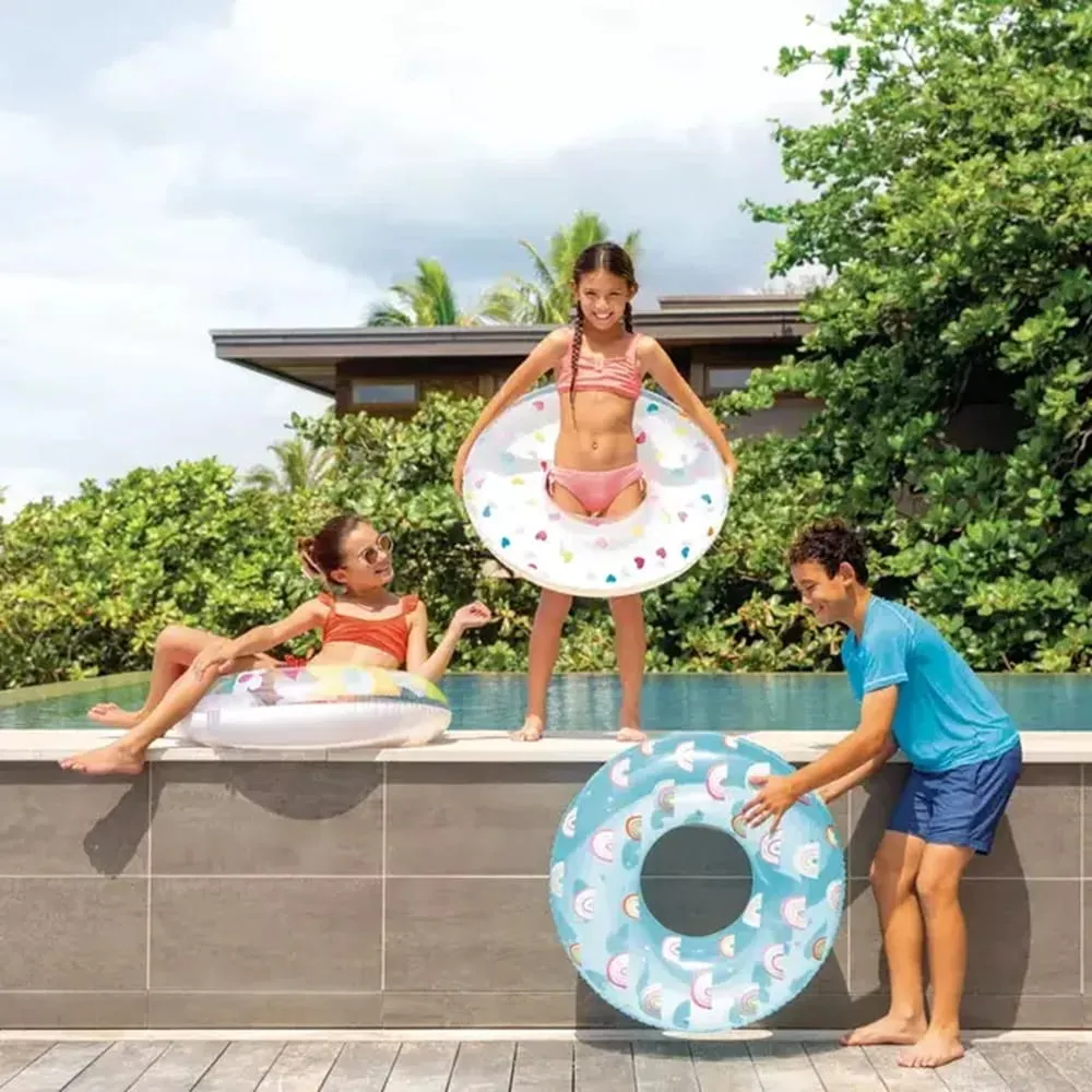 Nafukovací plavecký kruh Intex o průměru 70 cm je vhodný do bazénu, k jezírku i k moři. Barevné provedení působí hravě a zároveň zvyšuje viditelnost ve vodě.