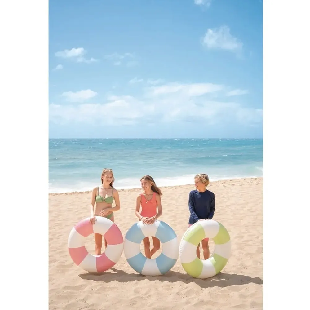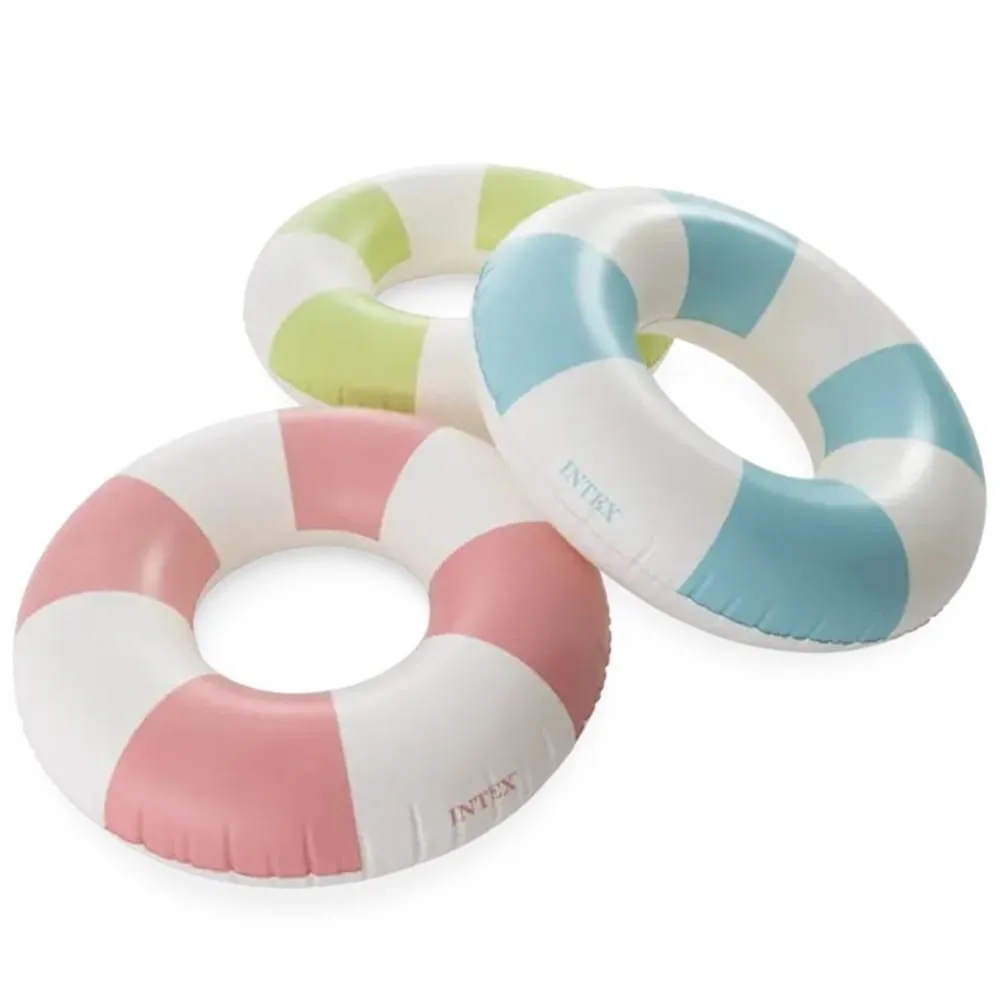 Nafukovací plavecký kruh Intex o průměru 79 cm je vhodný do bazénu, k jezírku i k moři. Barevné provedení s pruhama působí hravě a zároveň zvyšuje viditelnost ve vodě.