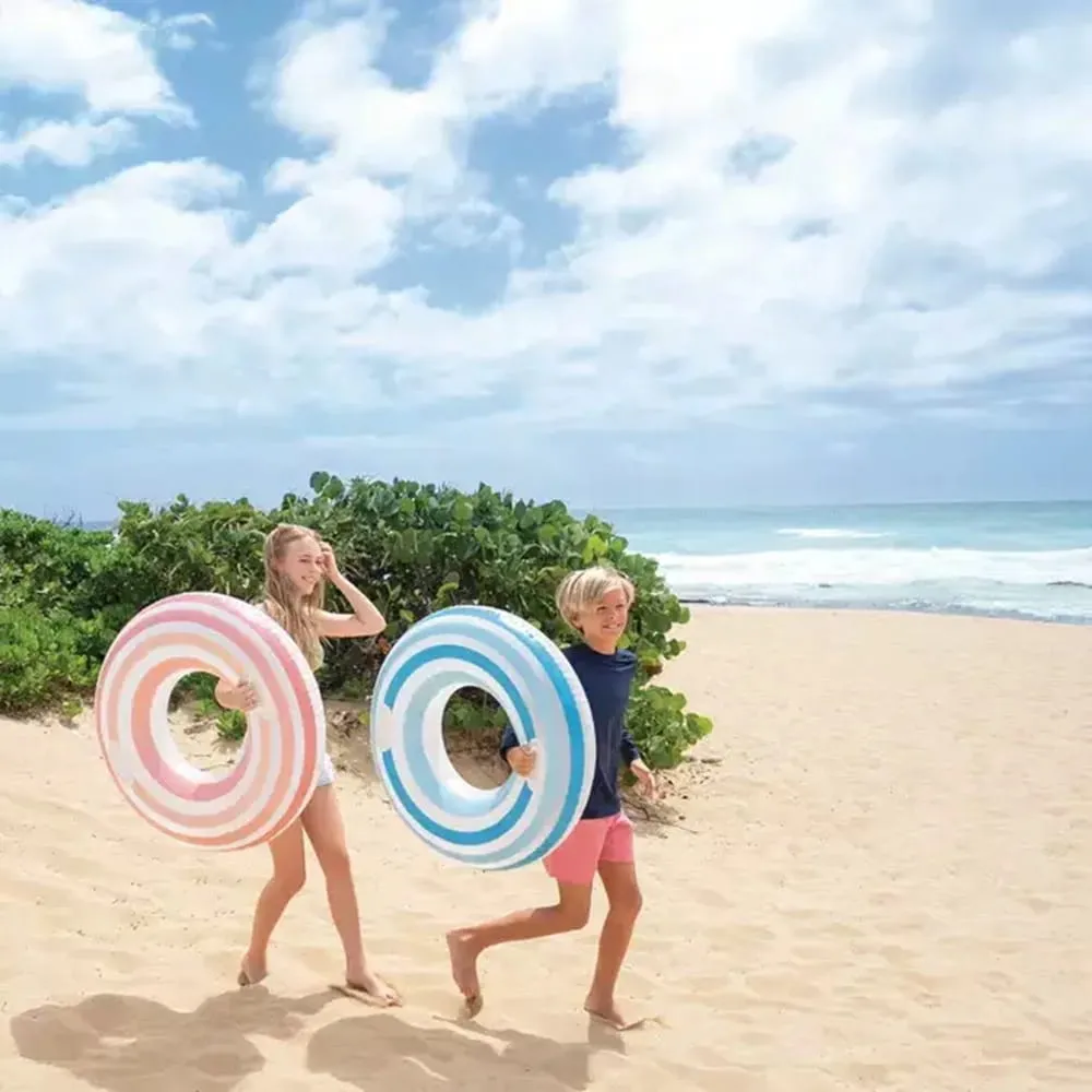Nafukovací plavecký kruh Intex o průměru 79 cm je vhodný do bazénu, k jezírku i k moři. Dvě držadla na každé straně zajistí pohodlnou manipulaci a barevné provedení zvyšuje viditelnost ve vodě.