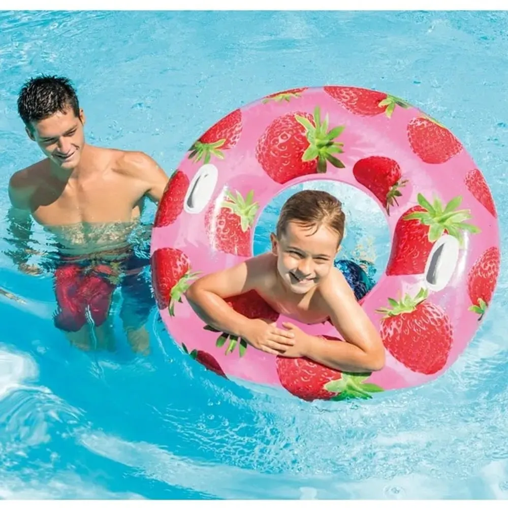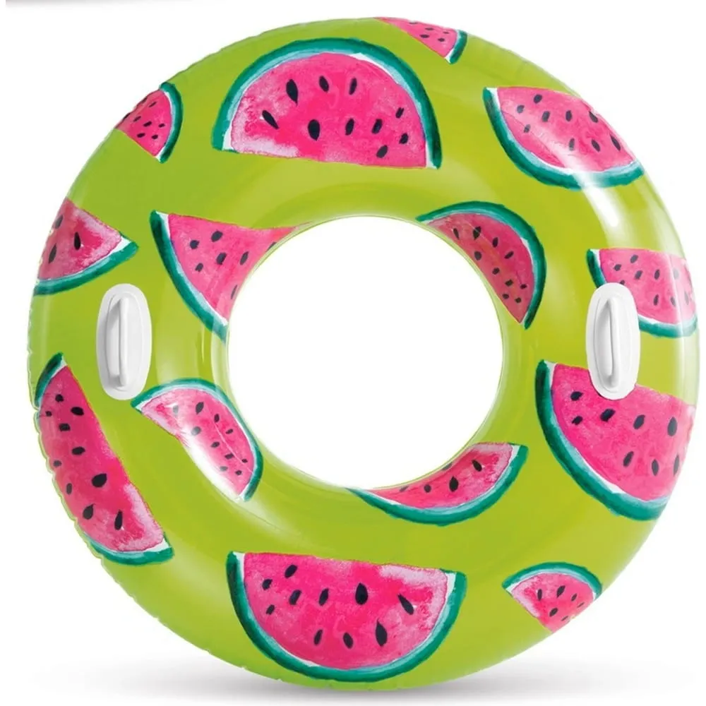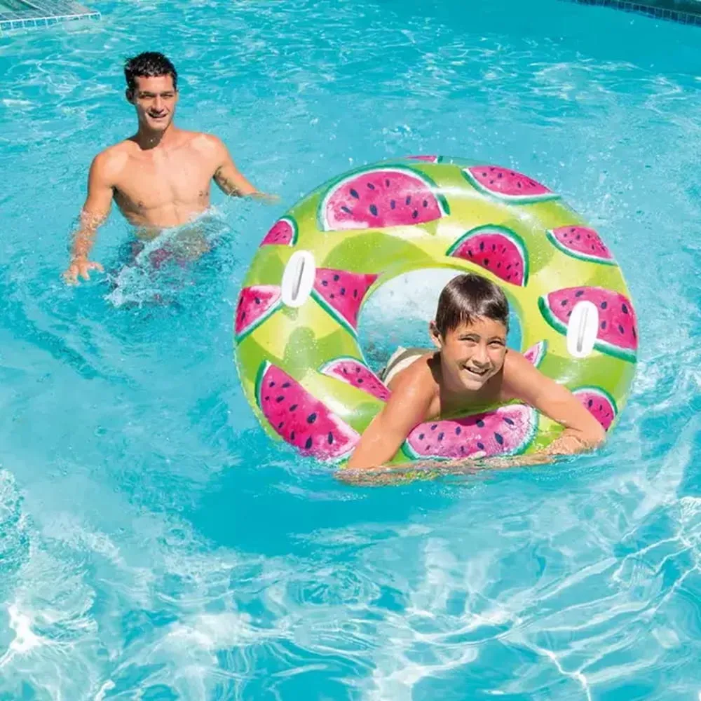 Nafukovací plavecký kruh Intex o průměru 94 cm je vhodný do bazénu, k jezírku i k moři. Dvě držadla na každé straně zajistí pohodlnou manipulaci a barevné provedení zvyšuje viditelnost ve vodě.
