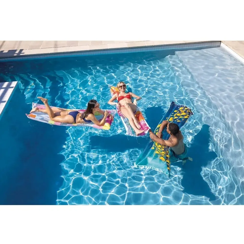 Nafukovací lehátko Intex s rozměry 183 x 69 cm je vhodné do bazénu, k jezírku i k moři. Zářivé barevné provedení působí hravě a zároveň zvyšuje viditelnost ve vodě.