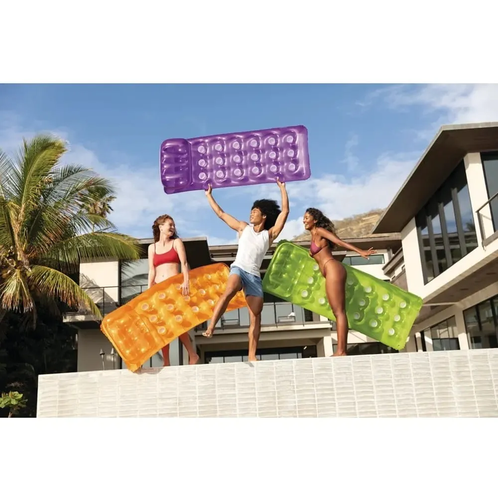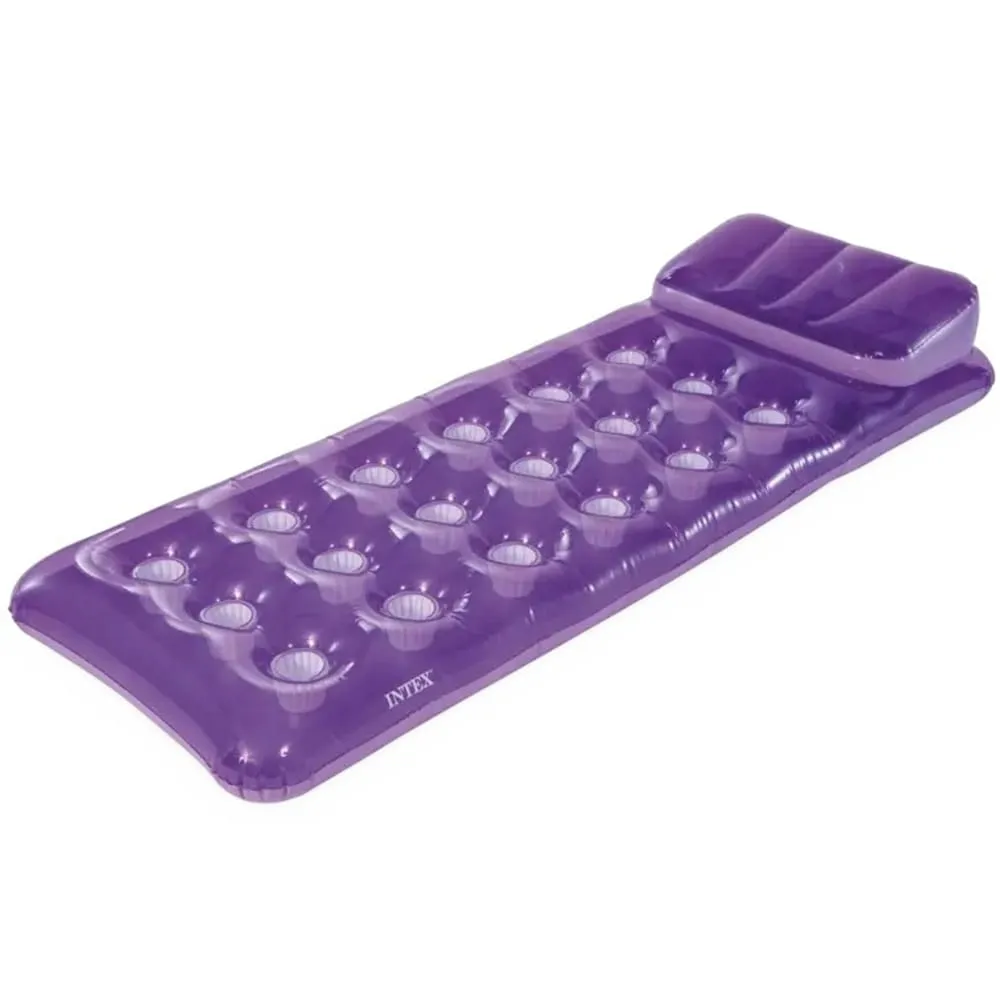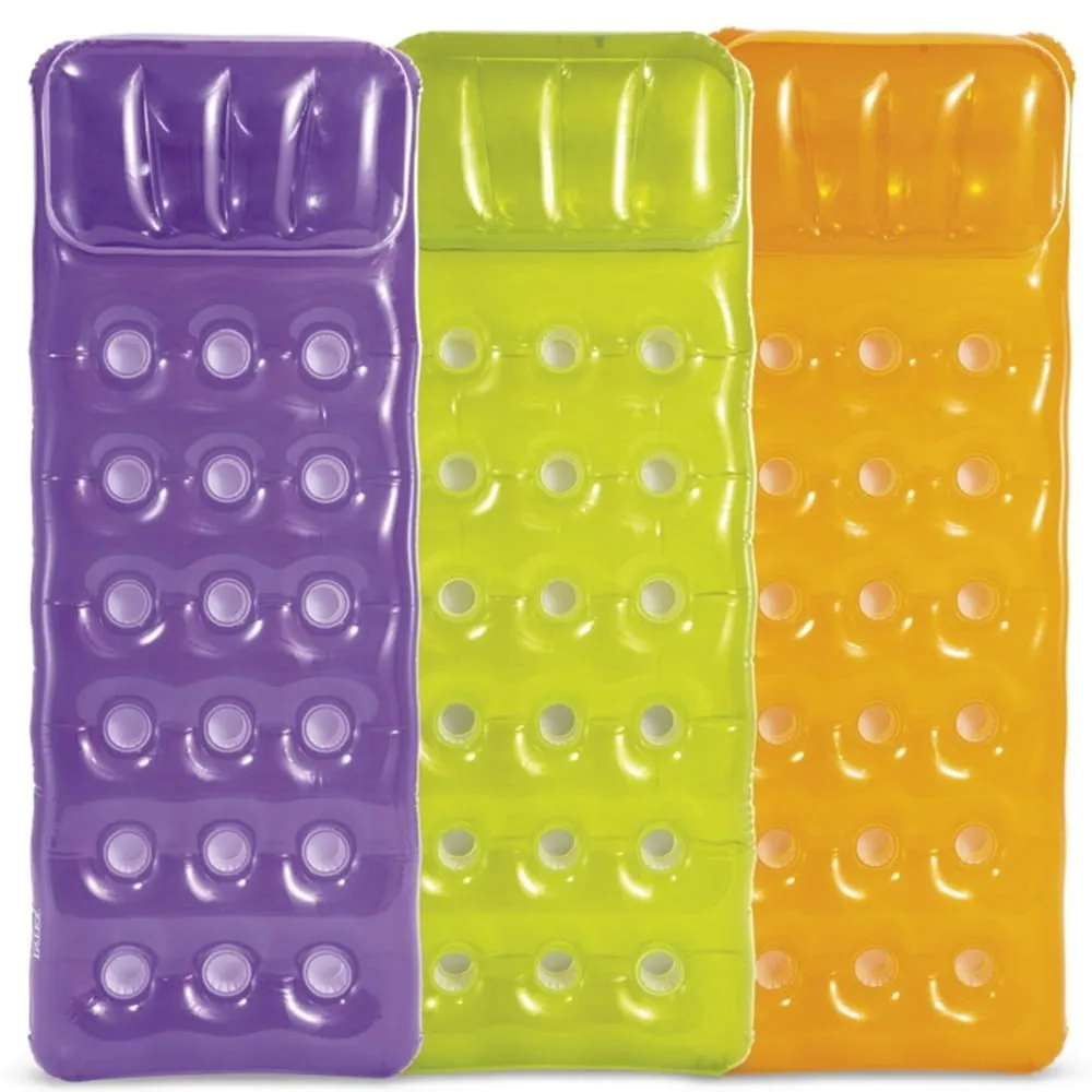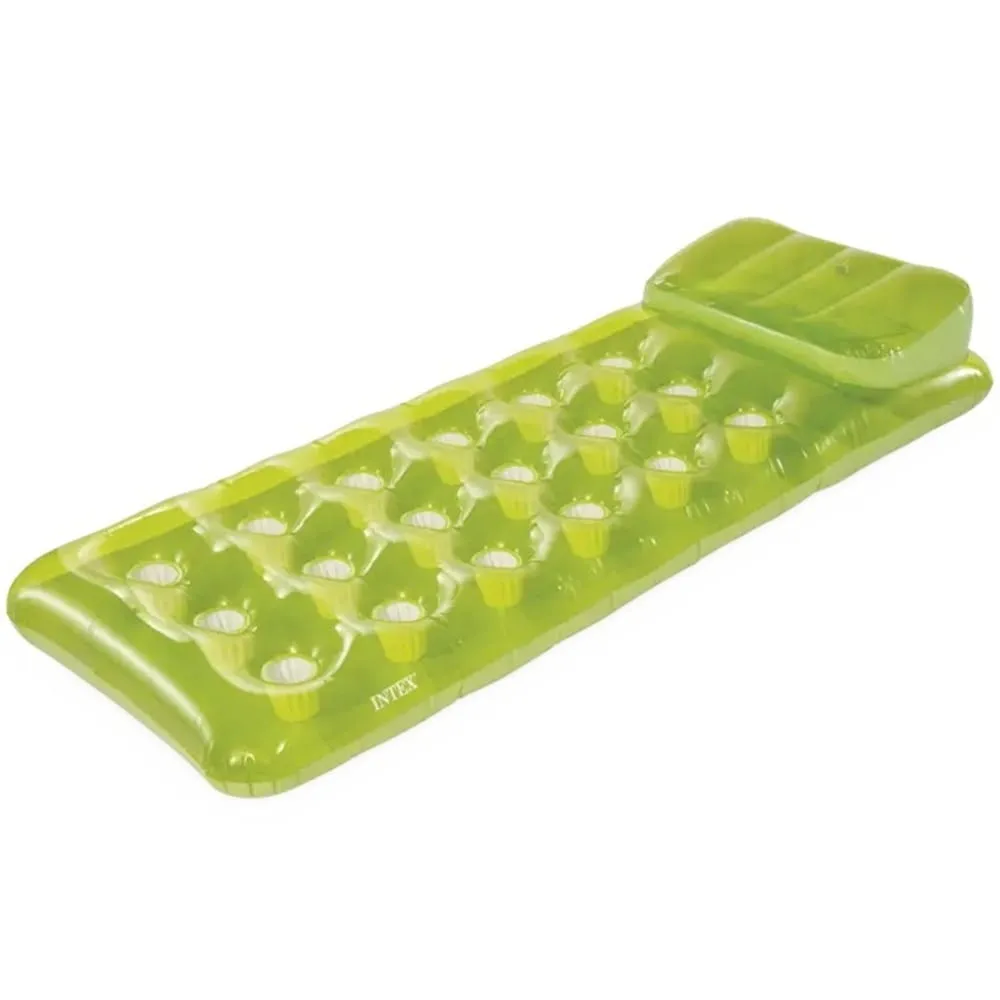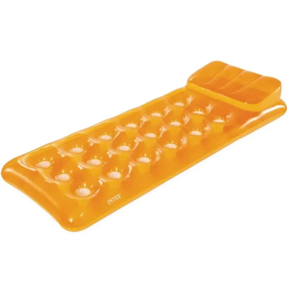 Nafukovací lehátko Intex s rozměry 188 x 71 cm je vhodné do bazénu, k jezírku i k moři. Barevné provedení působí hravě a zároveň zvyšuje viditelnost ve vodě. Integrovaný polštář zpříjemní komfort při ležení.