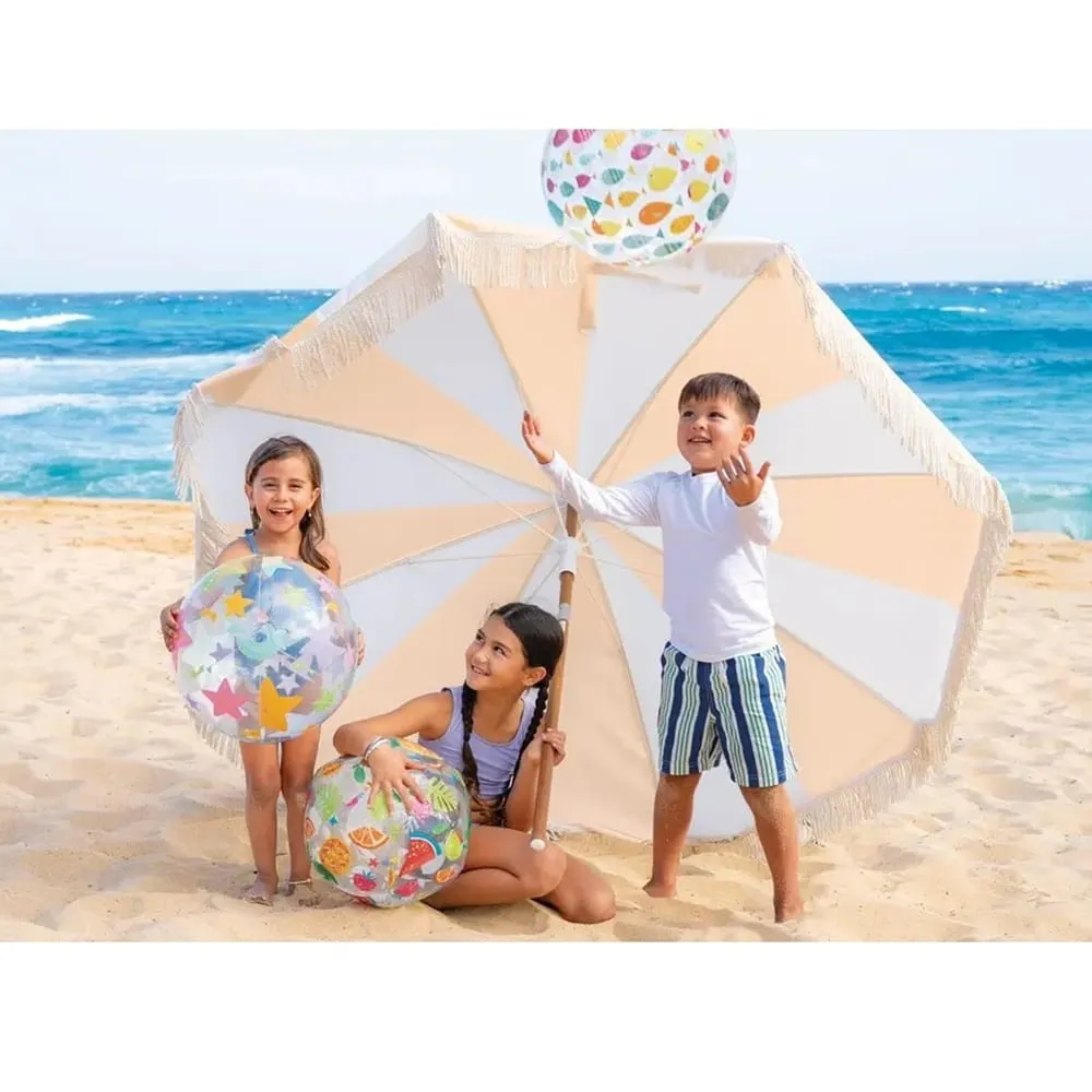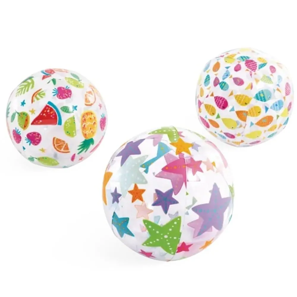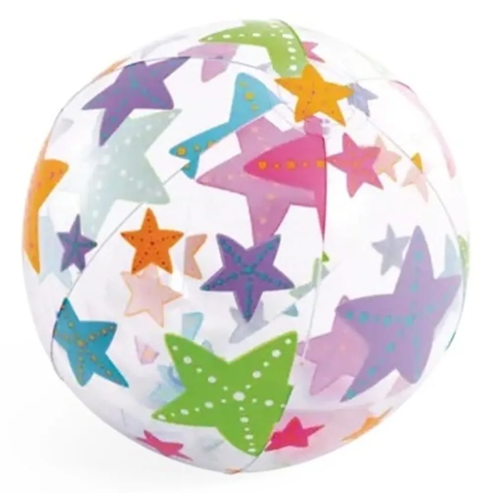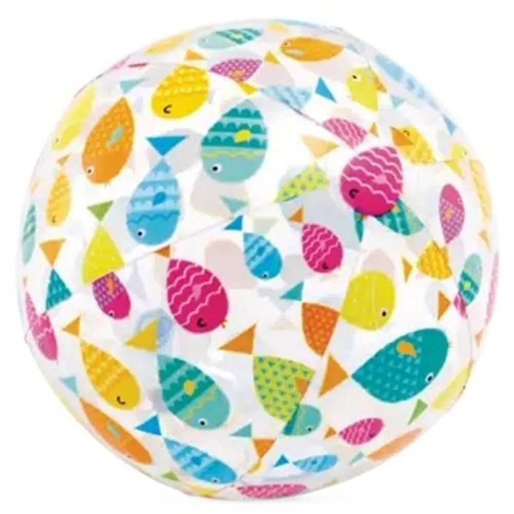 Nafukovací míč Intex s průměrem 51 cm přináší zábavu pro děti i dospělé. Díky své velké velikosti je ideální pro hry v bazénu, u vody i na pláži. Provedení s barevným potiskem ovoce, hvězdic a rybek působí hravě a při pohybu na vodě i na souši skvěle vynikne.