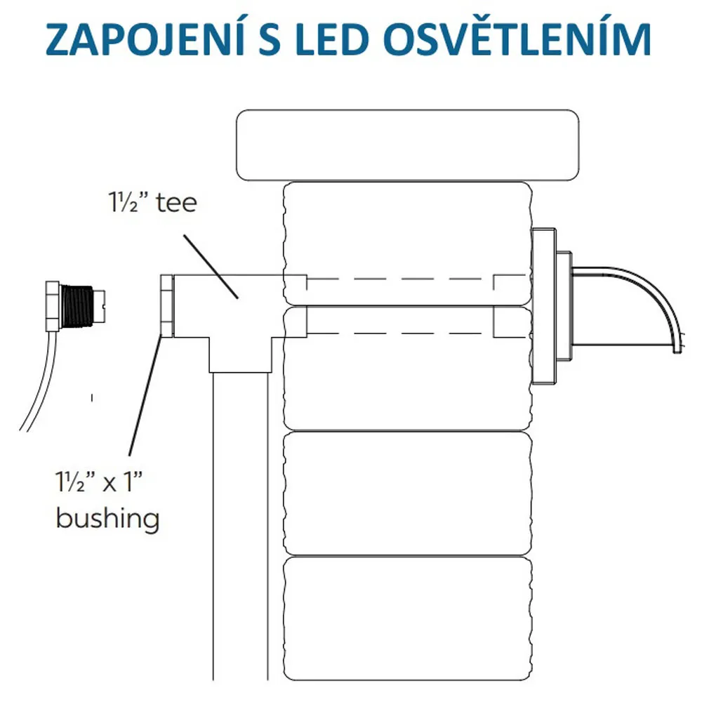 • Osvětlení se instaluje před napojení samotného chrliče - Při napojení bez LED se používá koleno, při napojení chrliče s LED se použije T-kus, viz. fotogalerie.