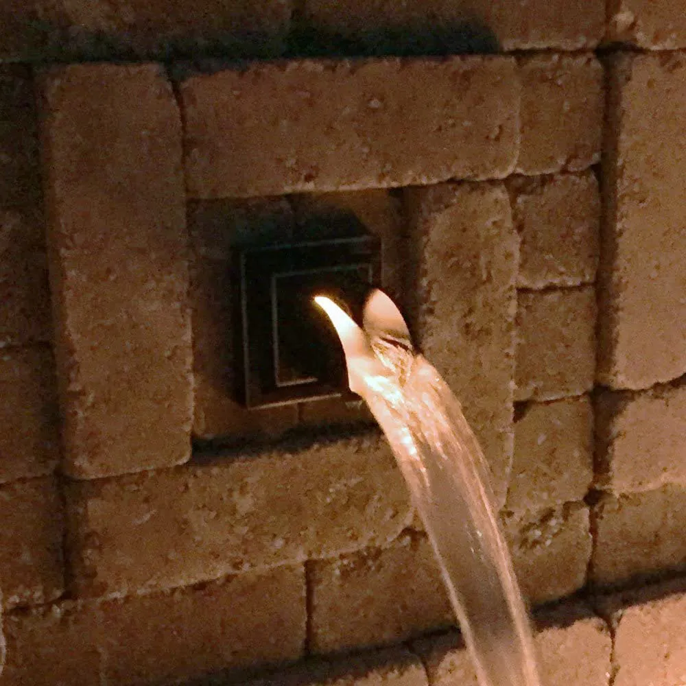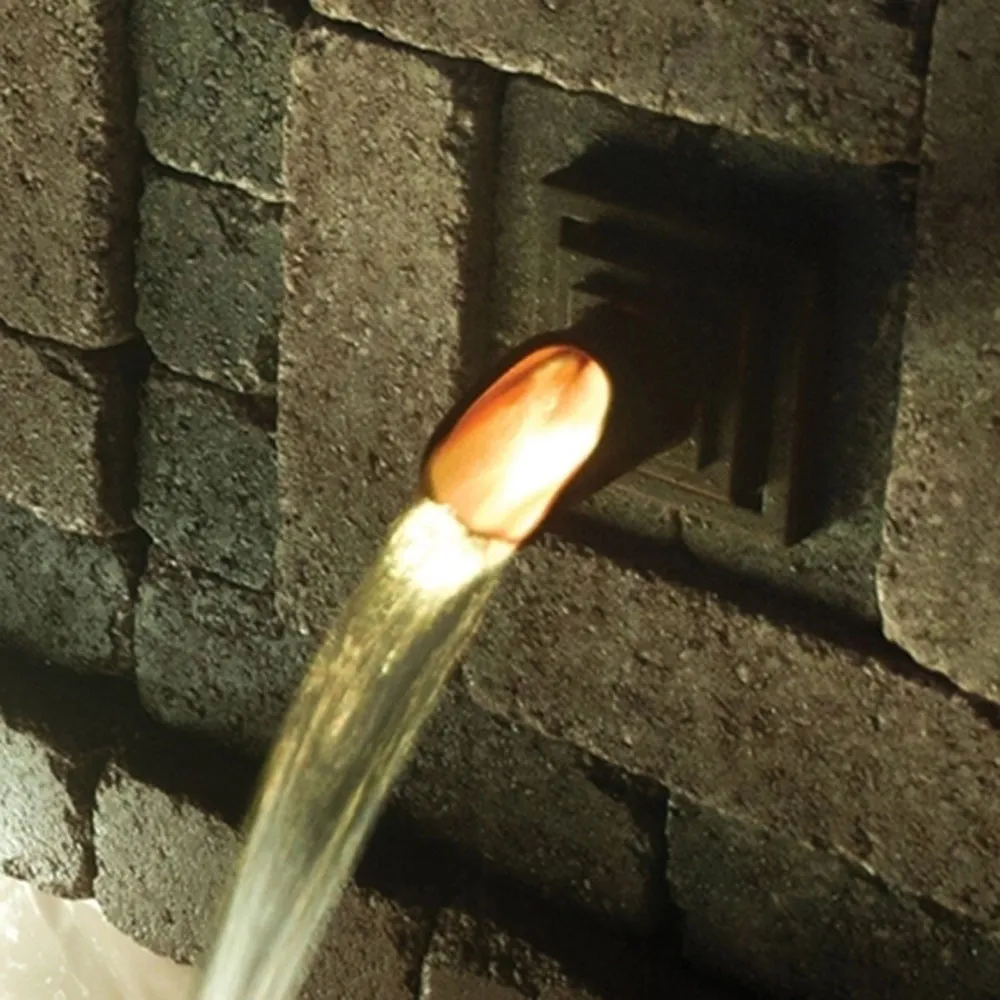 LED osvětlení pro nástěnné chrliče Oase zvýrazní a zviditelní efekt ve večerních hodinách.