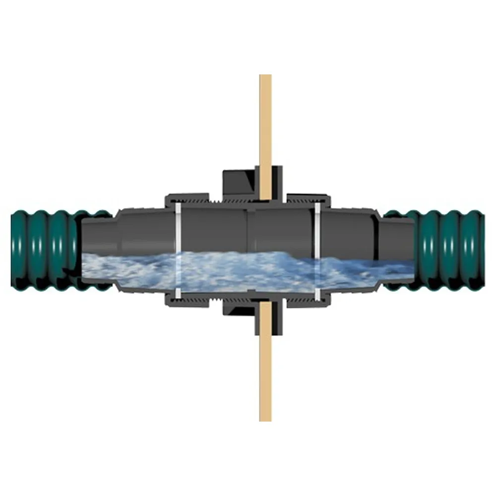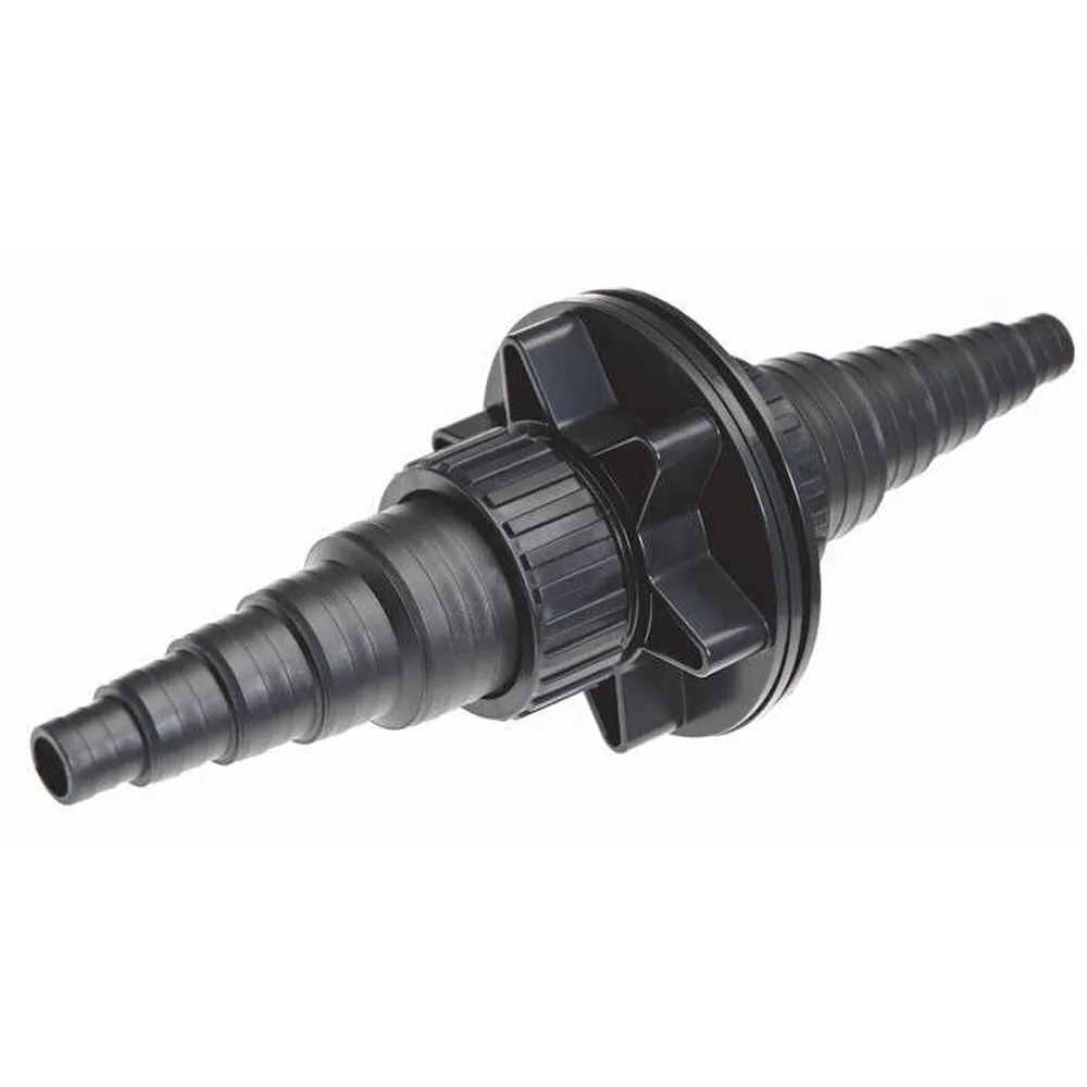 Hadicové trny z obou stran pro hadice 20/25/32/40/50 mm. Stěnová a fóliová průchodka pro kabel, nebo hadici.
