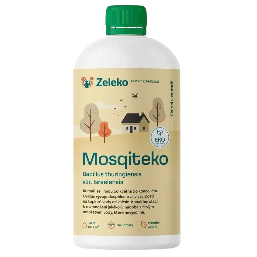 - Přípravek Mosqiteko obsahuje bakterii Bacillus thuringiensis var. israelensis, která účinně zasahuje do vývoje larev komárů.