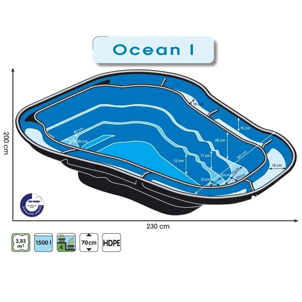 - Pokud nechcete jezírko tvarovat z folie a bát se propíchnutí, dobře Vám toto jezírko poslouží. Hloubka 70 cm umí posktnout i letní osvěžení