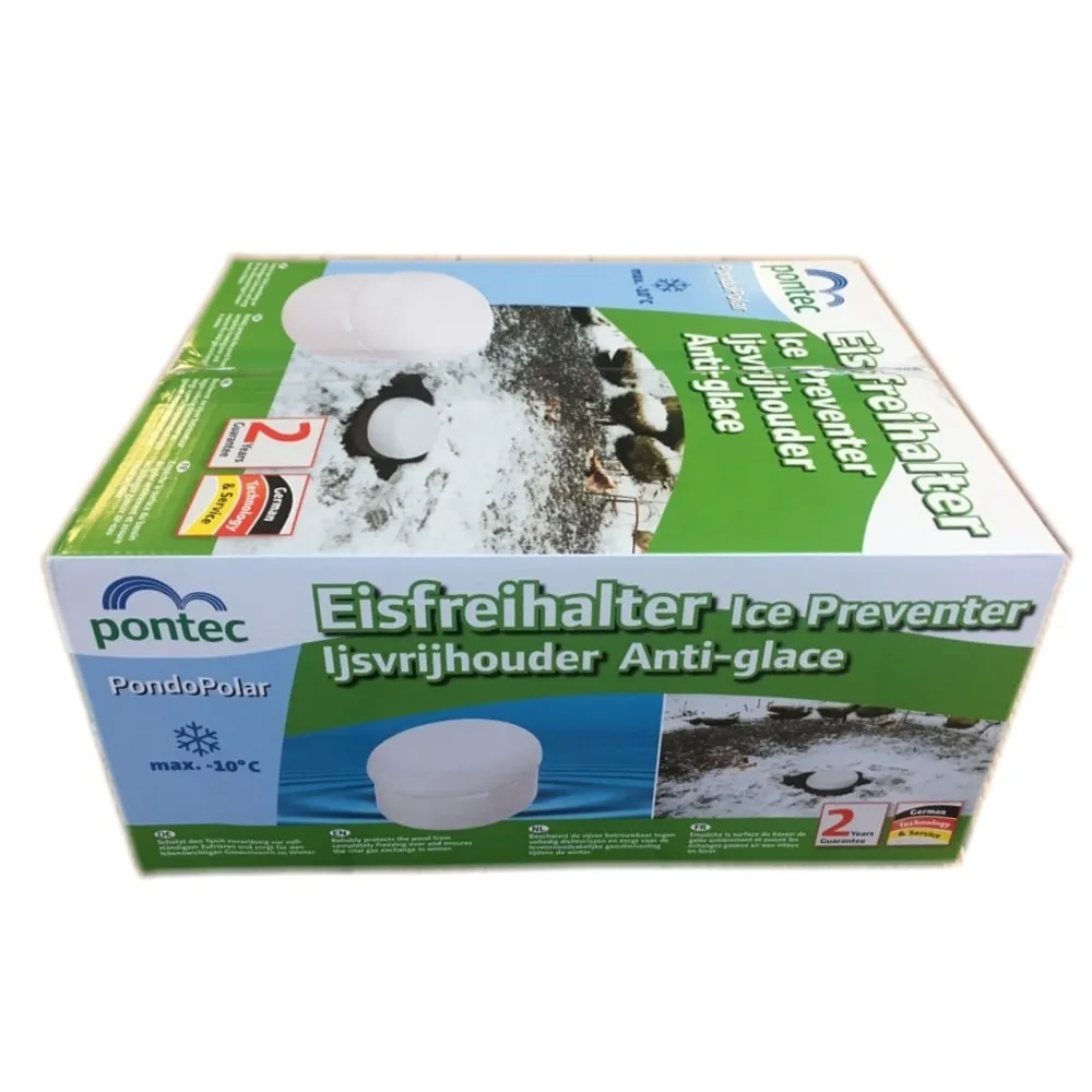 Pontec PondoPolar je polystyrenový dvoudílný plovák proti tvorbě ledu a zamrzání jezírka. Tato varianta patří k nejlevnějším protizámrazovým systémům jezírka. Plovák zaručí, že hladina vody jezírka nezamrzne do teploty až -10 °C. Bez elektřiny usnadní všem obyvatelům jezírka přezimování.