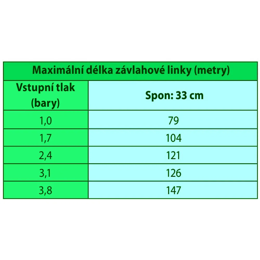 • Průtok 2,3 litru za hodinu / 1 kapkovač, spon 33 cm
