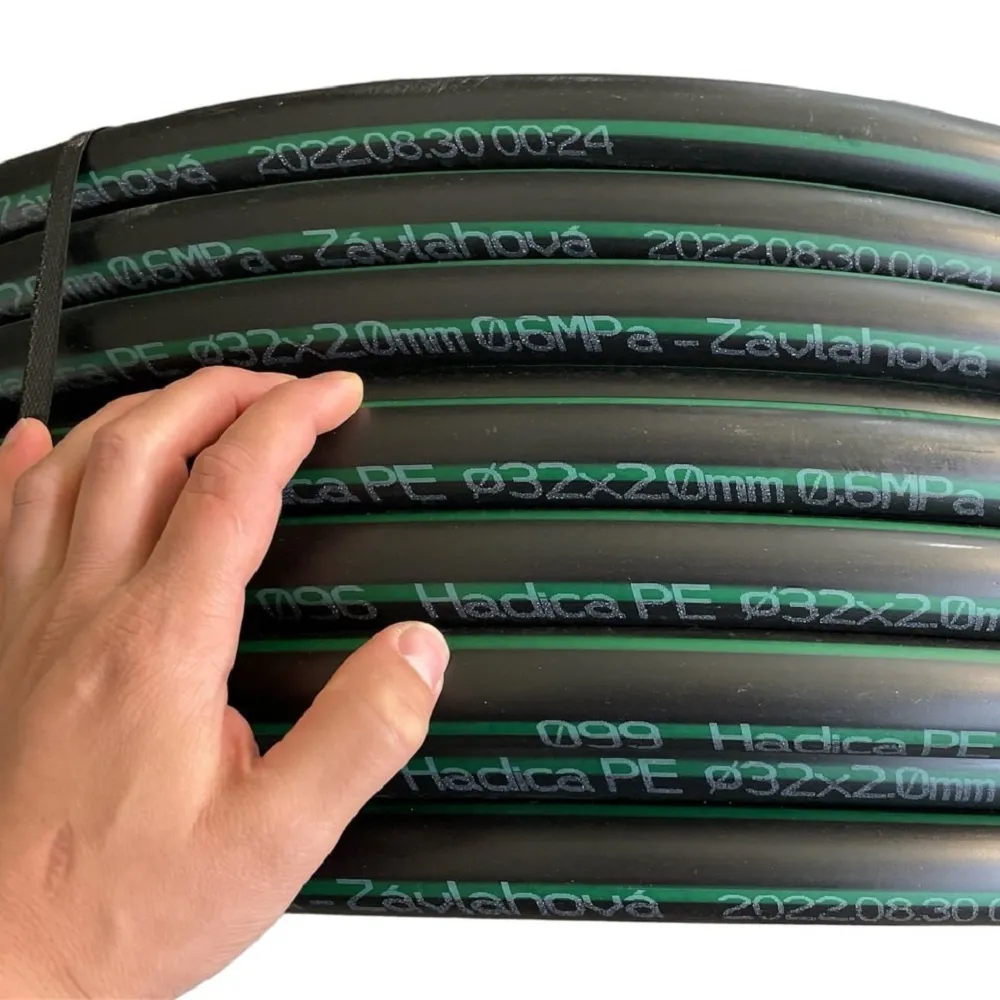 Závlahová PE hadice s vnejším průměrem 32 mm se používá především pro rozvod vody u závlahových systémů, při realizaci vodních systémů zahradních jezírek apod.