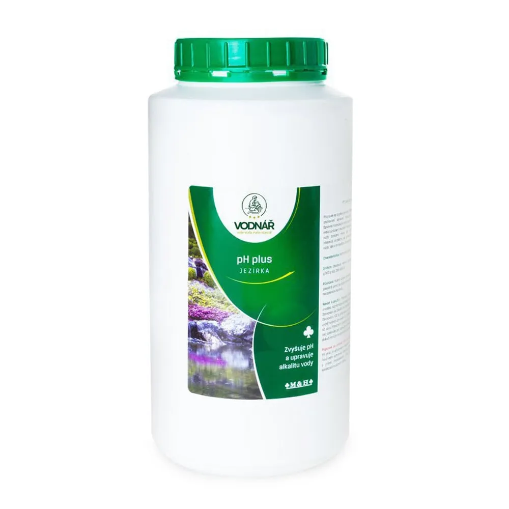 Přípravek na zvýšení pH a alkality v jezírku. Vodný roztok přípravku pH plus reaguje zásaditě, a proto se s ním snadno upravuje pH z kyselých hodnot na optimální hodnotu pH vody a rovněž zvyšuje alkalitu kyselých vod. Správná hodnota pH je důležitým aspektem při likvidaci vláknité řasy a zelené vody ve vašem jezírku. Snižuje se zde i riziko vzniku vláknité zelené řasy.