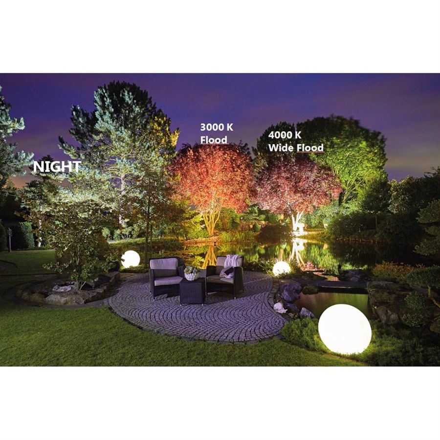 Světlo barvy 3000° K (teplá bílá) se skvěle hodí k nasvícení teplejších (podzimních) barev. (stromy, keře, kůry, fasády atd.)