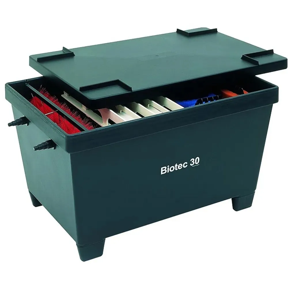 OASE BioTec 30 je průtokový vícekomorový filtr s průtokem 23000 l/h určený pro jezírka do 120 m³. Kombinuje mechanicko-biologické čištění s velkou filtrační plochu, která poskytuje ideální podmínky pro stabilní biologické procesy.