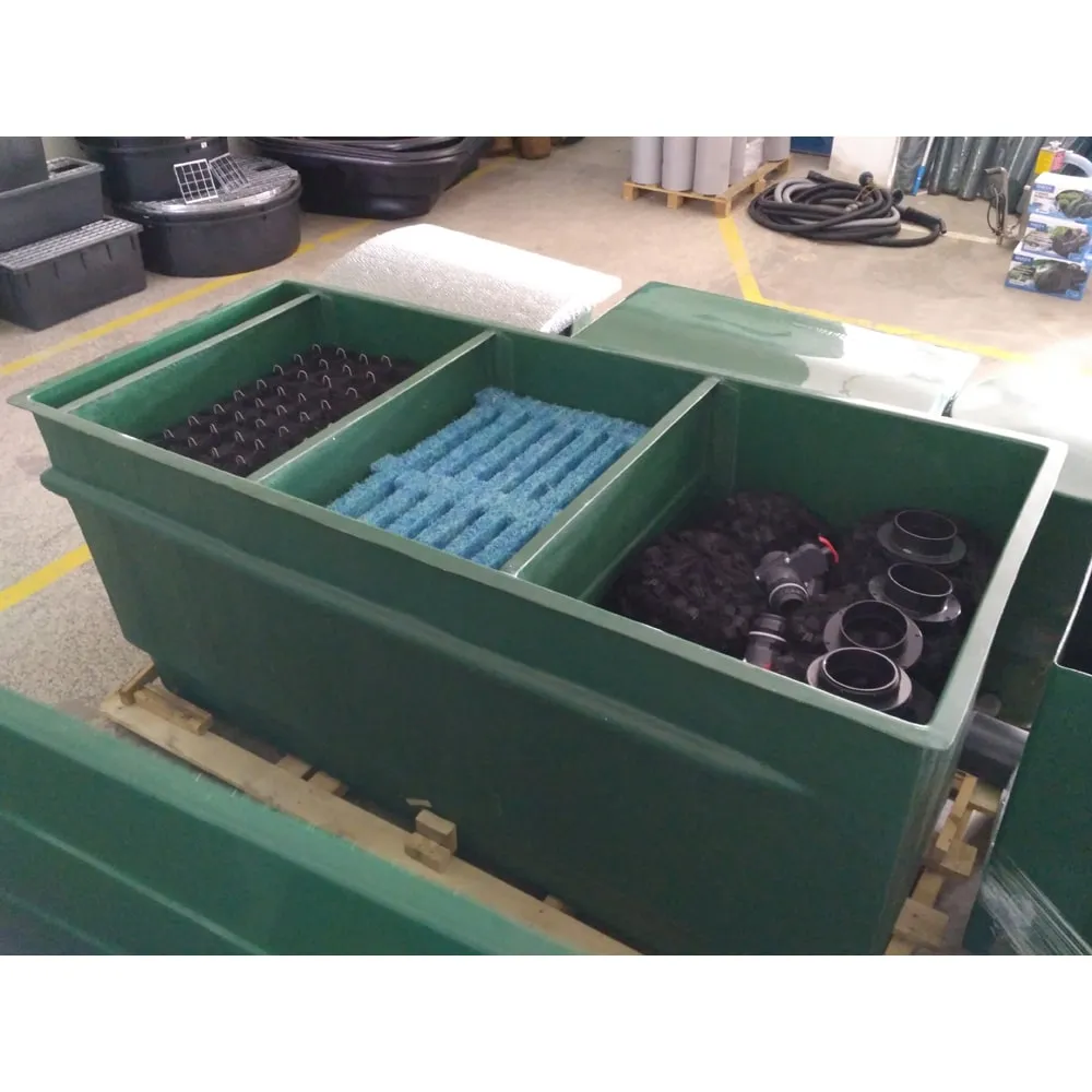 Filtr je tvořen třemi prostornými komorami řazenými za sebou. V první komoře se nacházejí kartáče pro zachycení hrubých nečistot. Druhá komora obsahuje biokuličky pro osídlení filtračních bakterií. V poslední komoře jsou bioakvacit kostky, které dále rozšiřují filtrační plochu pro biologickou filtraci.