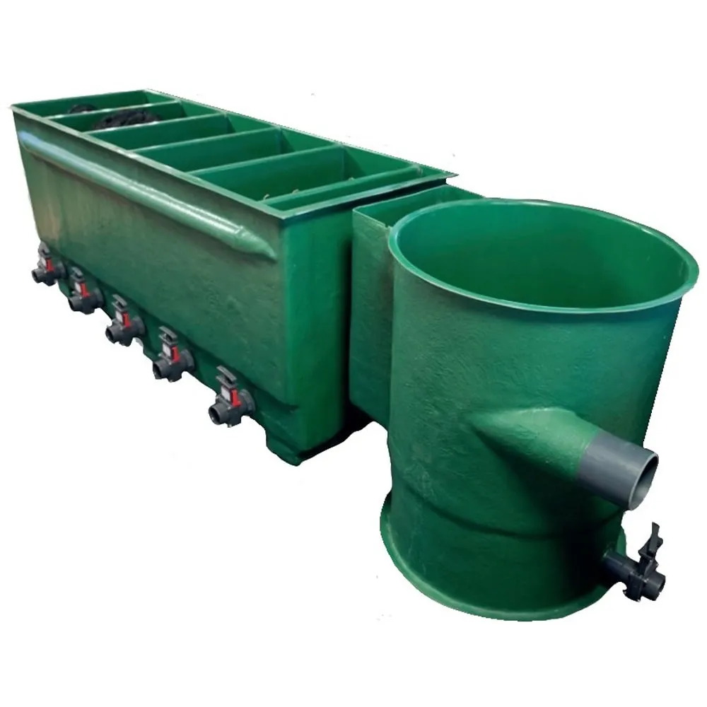 Filtr lze zapojit jako gravitační nebo čerpadlový systém. Připojuje se na běžné potrubí DN110, což zjednodušuje instalaci i případné rozšíření. Každá komora má vlastní odkalovací ventil pro rychlou údržbu.