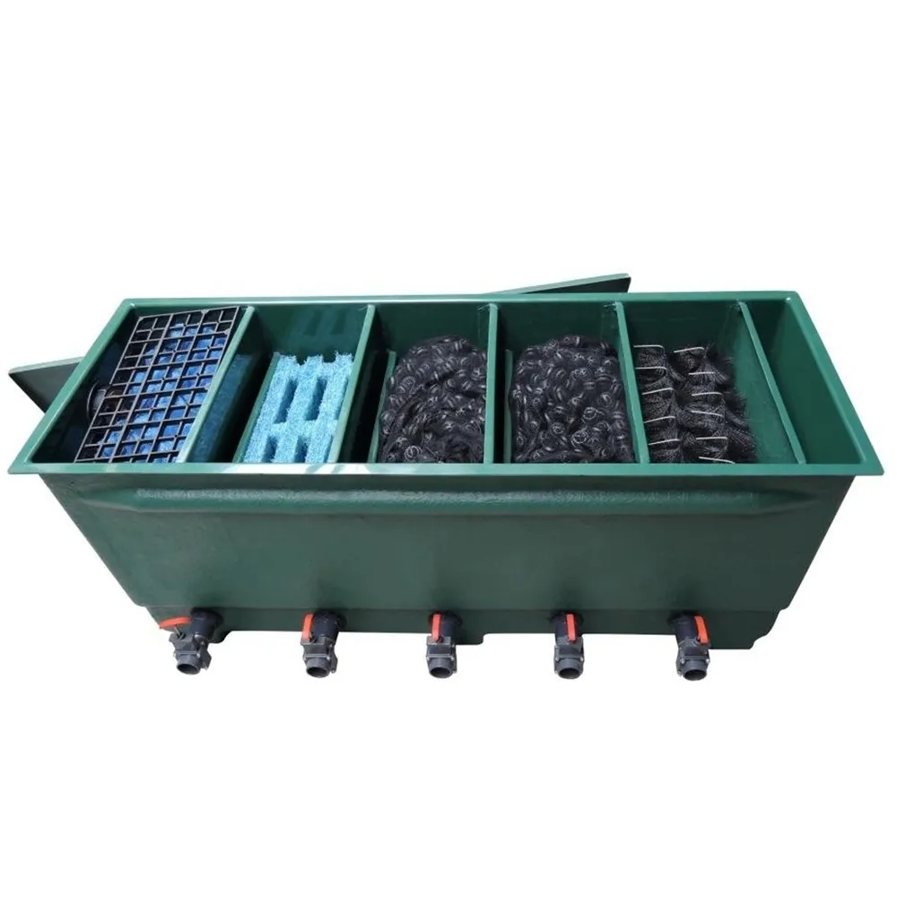 Filtr je tvořen pěti prostornými komorami řazenými za sebou. V první komoře se nacházejí kartáče pro zachycení hrubých nečistot. Druhá a třetí komora obsahují biokuličky pro osídlení filtračních bakterií. Ve čtvrté komoře jsou umístěny japonské rohože, které poskytují velkou plochu pro biologické procesy. V poslední komoře jsou bioakvacit kostky, které dále rozšiřují filtrační plochu pro biologickou filtraci.