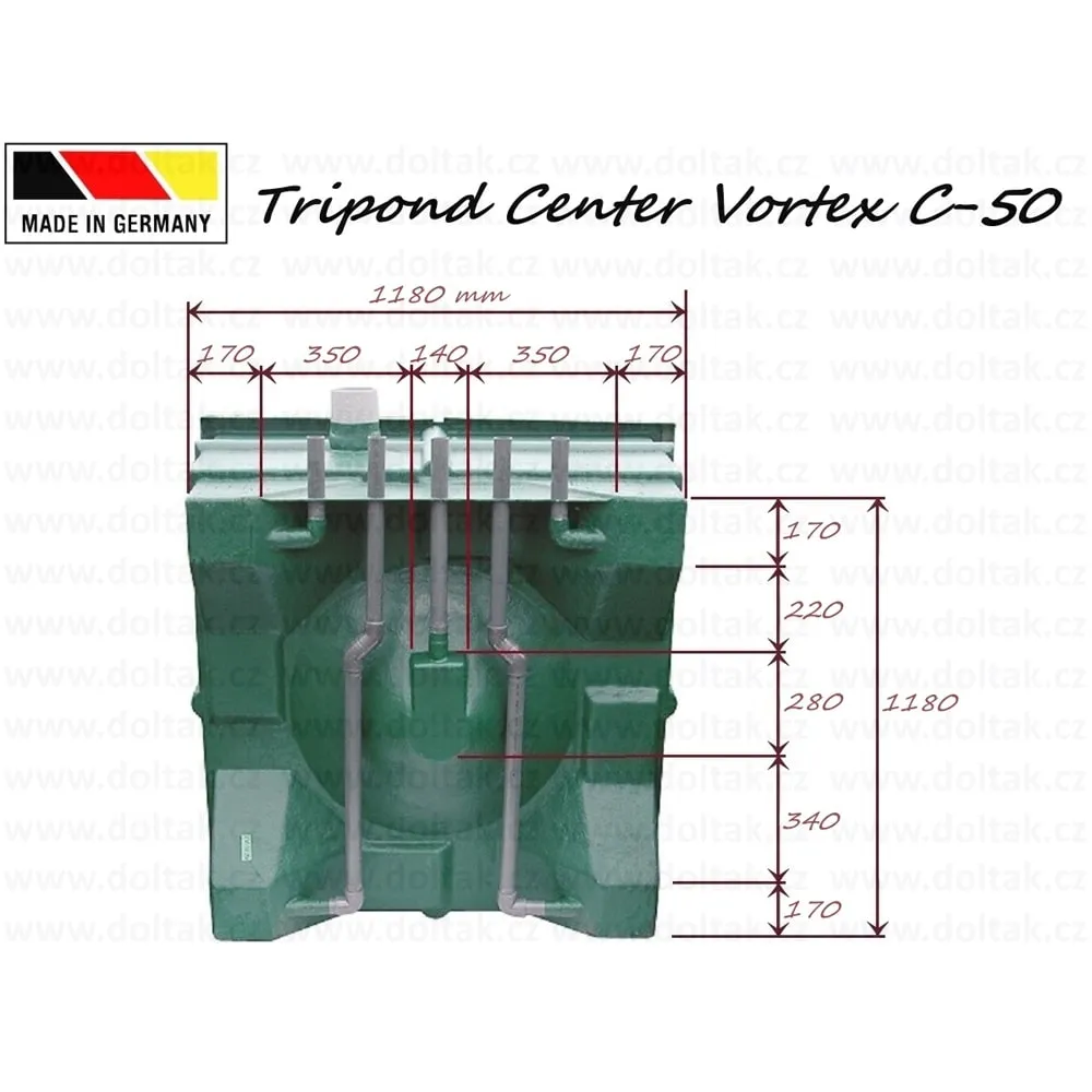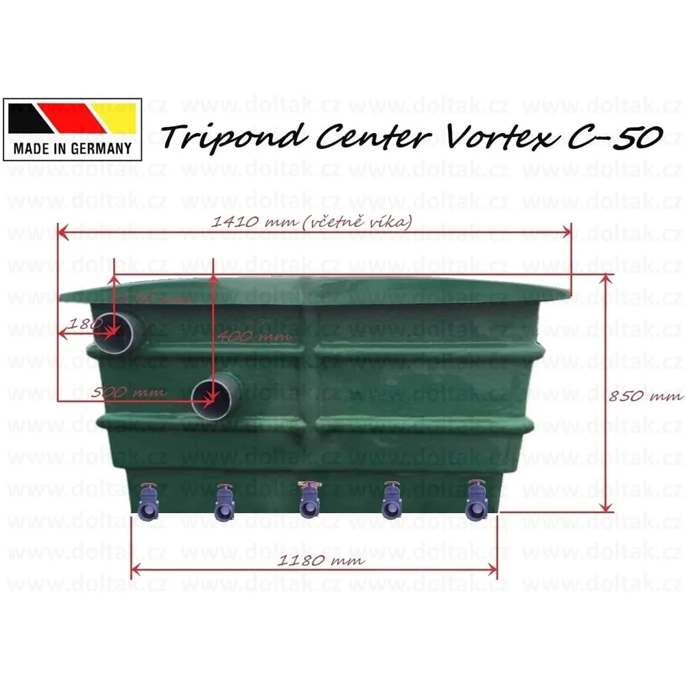 Tripond Center Vortex C-50 je pětikomorový průtokový filtr s velkou vortexovou komorou, určený pro účinné mechanické a biologické čištění jezírek do 50 m3. Filtr nabízí stabilní biologii, dlouhé intervaly mezi čištěním a spolehlivý provoz.