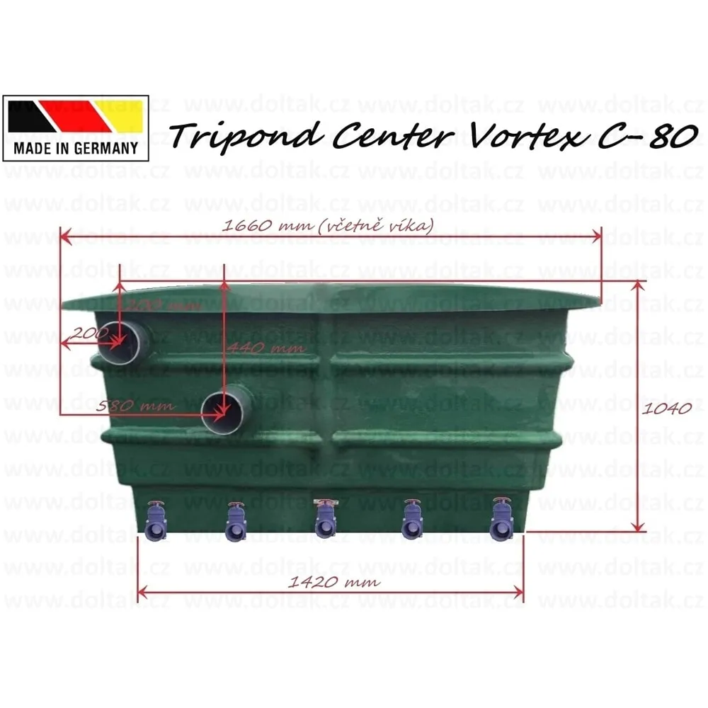 Tripond Center Vortex C-80 je pětikomorový průtokový filtr s velkou vortexovou komorou, určený pro účinné mechanické a biologické čištění jezírek do 80 m3. Filtr nabízí stabilní biologii, dlouhé intervaly mezi čištěním a spolehlivý provoz.