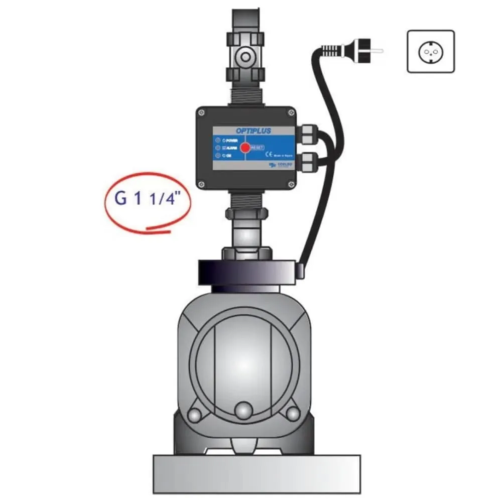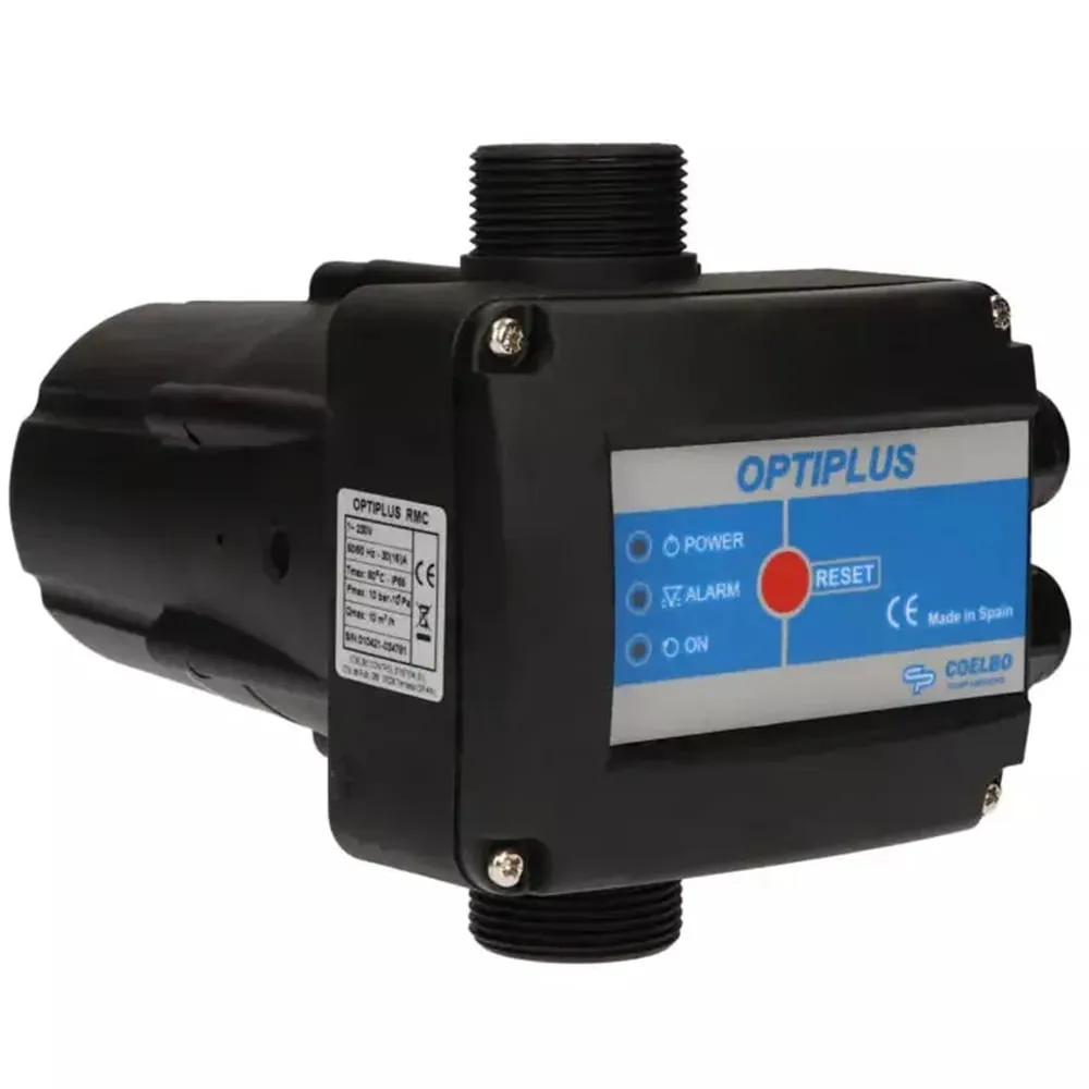 Průtokový tlakový spínač Coelbo OPTIPLUS je moderní a kompaktní zařízení pro automatické ovládání a ochranu elektrických čerpadel s výkonem do 2,2 kW. Tento model kombinuje elektronický snímač průtoku a tlaku, který řídí provoz čerpadla.