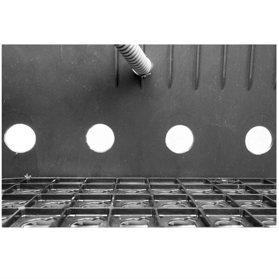 Součástí sestavy je pevný plastový rošt na dně, který chrání proti prorůstání krtů a zároveň uspořádává vnitřní prostor. Geotextilie po obvodu i na dně šachty zabraňuje pronikání zeminy. Připojení je řešeno pomocí tvarovek 32 mm na vstupu a 25 mm na výstu. Vodotěsná elektroinstalační krabice s páčkovými svorkami zjednodušuje zapojení kabeláže a zajišťuje čisté a přehledné vedení.