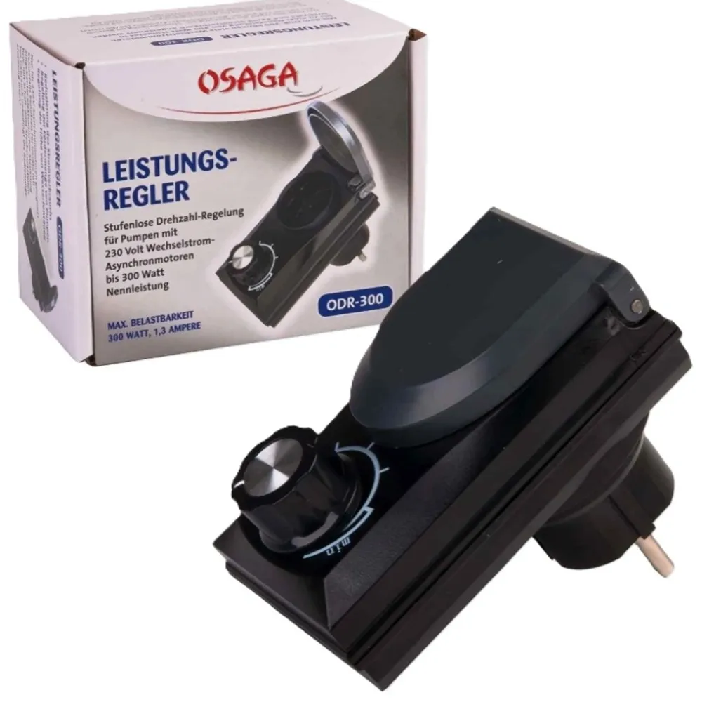 Regulátor výkonu ODR-300 slouží k plynulé regulaci asynchronních čerpadel a osvětlení do maximálního příkonu 300 W. Pomocí otočného potenciometru lze jednoduše upravit výkon připojeného zařízení podle aktuální potřeby, a tím přizpůsobit průtok vody nebo intenzitu světla.
