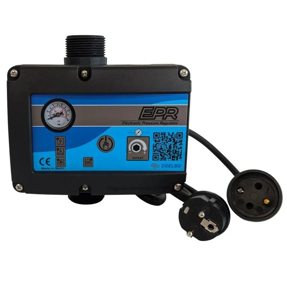 Elektronický průtokový spínač Coelbo EPR je inteligentní řídicí jednotka pro domácí vodárny a zavlažovací systémy. Nahrazuje klasické tlakové spínače a zajišťuje plně automatický provoz čerpadla s přesným udržením výstupního tlaku. Díky integrovaným ochranným funkcím, jako je prevence chodu nasucho nebo periodický antiblocking režim, prodlužuje životnost celého systému a zvyšuje spolehlivost provozu.