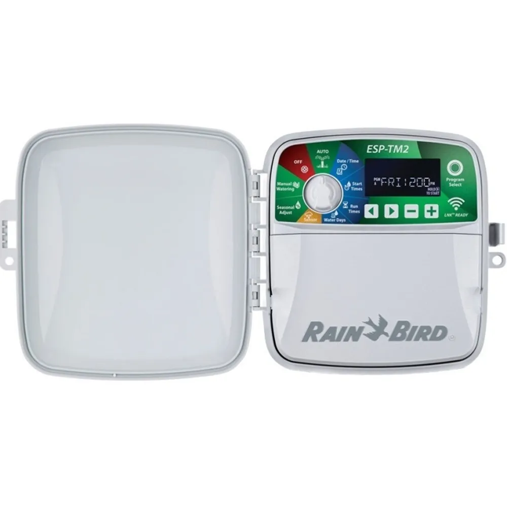 Řídicí jednotka Rain Bird ESP-TM2 je spolehlivé řešení pro automatické řízení zavlažovacích systémů na soukromých zahradách, komerčních i veřejných plochách. Díky vestavěnému transformátoru a odolnému provedení je určena pro venkovní instalaci. Ovládání je pomocí otočného kolečko a přehledný podsvícený LCD displej zajišťují intuitivní nastavení a rychlé spuštění závlahových programů.