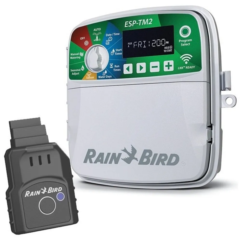 ESP-TM2 je plně kompatibilní s WiFi modulem Rain Bird LNK2 (prodává se samostatně), který umožňuje vzdálené ovládání z mobilních zařízení a automatické přizpůsobení závlahy aktuálnímu počasí. Díky tomu můžete snížit spotřebu vody až o 30 % a přizpůsobit zavlažování skutečným potřebám rostlin.