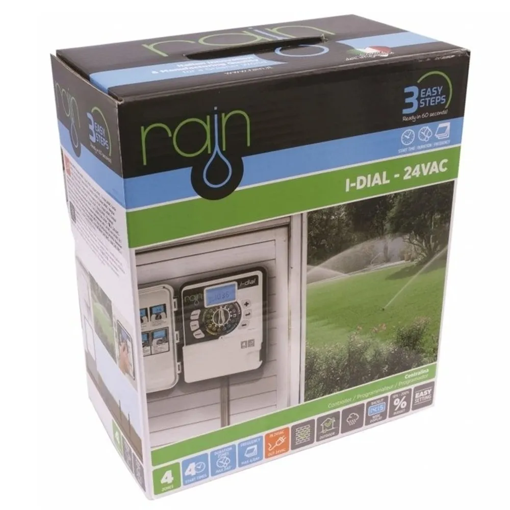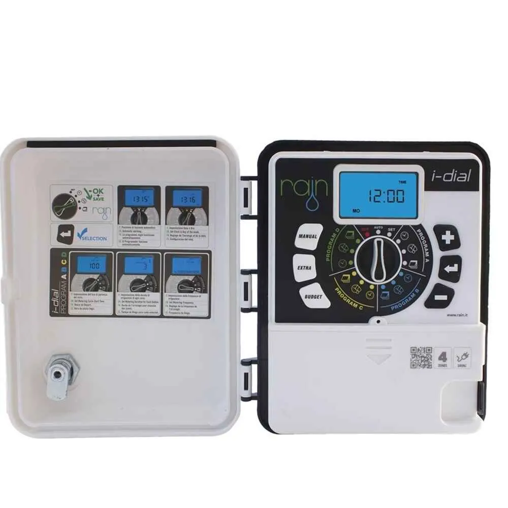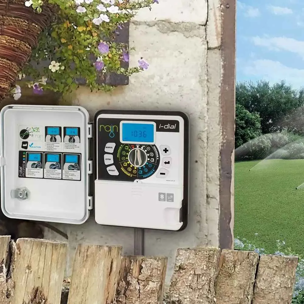 Venkovní řídicí jednotka Rain I-DIAL je určená pro ovládání osmi sekcí, ideální pro zahrady rodinných domů, menší parky nebo sportovní plochy. Díky robustní skříňce s možností uzamčení je elektronika chráněna před vlivy počasí i neoprávněnou manipulací, což zajišťuje dlouhou životnost a spolehlivý provoz. Ovládání probíhá jednoduše pomocí otočného voliče a podsvíceného displeje, který zaručuje snadné nastavení i za zhoršených světelných podmínek