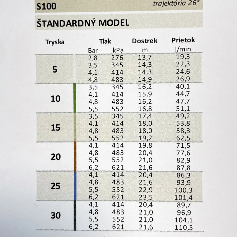 • Rain S100 patří mezi vysokovýkonné rotační postřikovače, které v závislosti na trysce mají dostřik 13,1-21,6 m