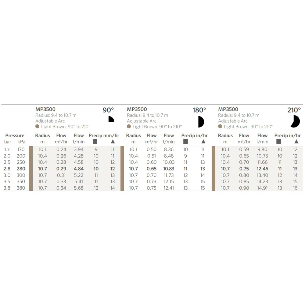 Hunter MP3500-90, dostřik 10,1 - 10,7 m, 90° - 210°