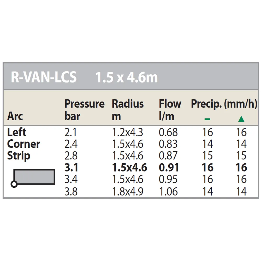 Rain Bird R-VAN-LCS, dostřik 1,5x4,6m, rotační tryska