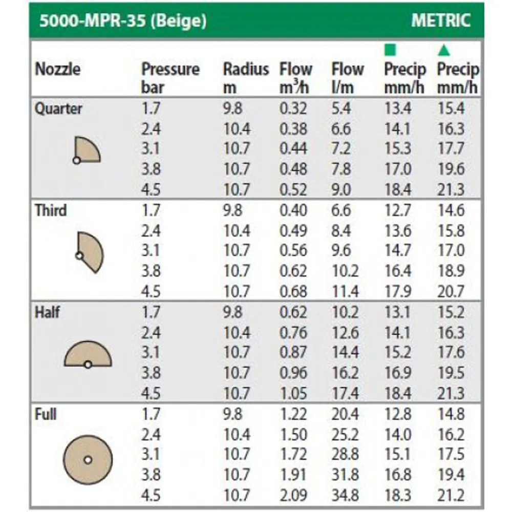 Trysky pro rotační postřikovače Rainbird řady 5000 ulehčí samotný návrh zavlažování a vnáší do něj další možnosti rozměrů zavlažování.