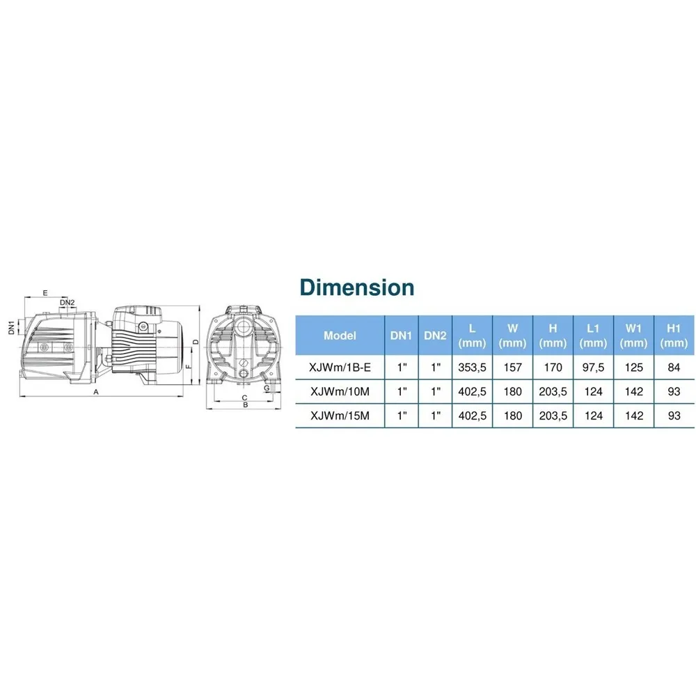 Samonasávací čerpadlo LEO XJWm/15M je kompaktní a spolehlivý pomocník pro čerpání vody na zahradě, chatě nebo u menších domů. S maximálním průtokem 90 l/min, výtlakem 55 m a příkonem 1 100 W je ideální volbou pro zavlažování, zásobování vodou či zvyšování tlaku v domácnosti. Díky samonasávací konstrukci si poradí i s přívodem vody ze sání až do hloubky 9 m.