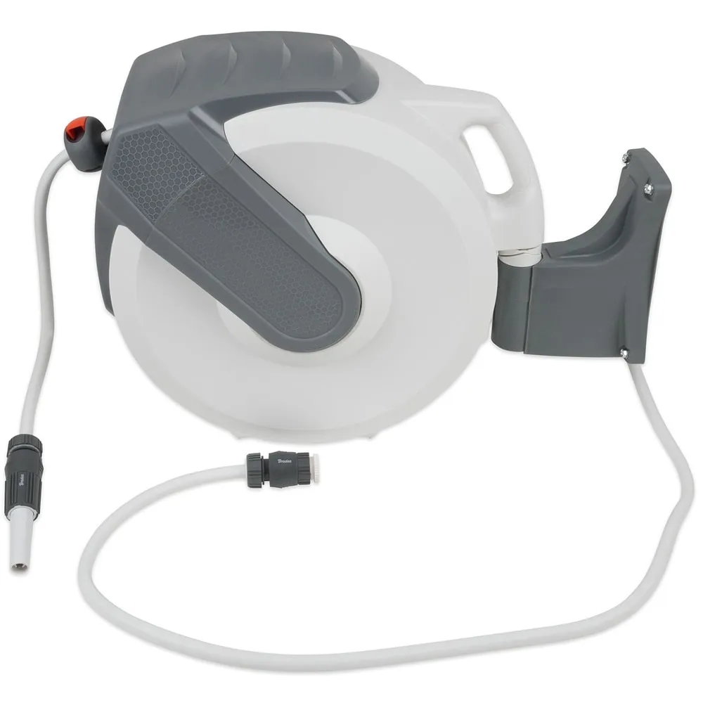 Závěsný hadicový samonavíjecí buben (včetně hadice délky 35 m) pro upevnění na stěnu umožňuje pohodlné navíjení hadice zpět do bubnu s automatickou blokací při vysunutí hadice do maximální délky, tedy až 35 m. Manipulace a samotné zavlažování je pohodlnější jelikož samonavíjecí buben je otočný v rozmezí 180°.