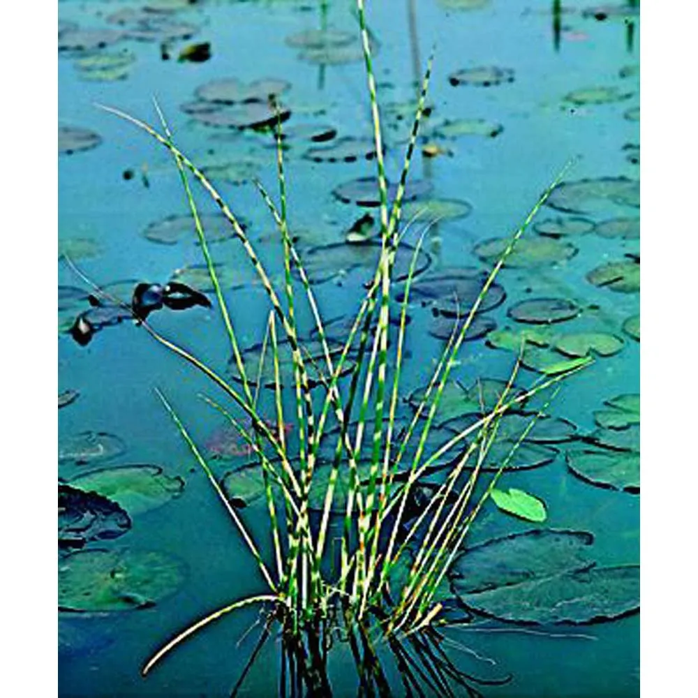Výška 50-70cm, hloubka vody 0-20cm. Listy zdobí příčné, bílé a zelené pruhy. Je to nejdekorativnější kultivar