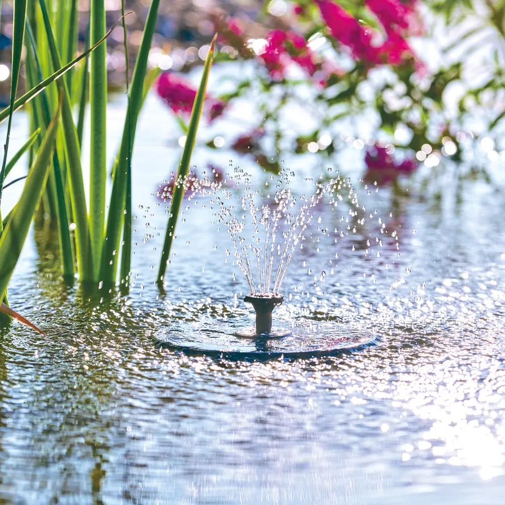 Solární fontána PondoSolar LED Island bez připojení k elektrické síti efektivně oživuje vaše jezírko. Díky integrovanému solárnímu panelu je fontána plně samostatná a ekologická, umožňující vytvoření až 50 cm vysokého vodního efektu. Fontána plní dekorační funkci a provzdušňovací funkci vody.