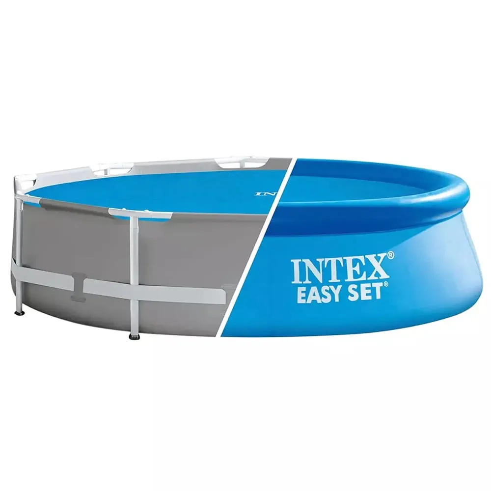 Solární plachta Intex určená pro kruhové nadzemní bazény o průměru 549 cm a slouží k ohřevu vody a omezení tepelných ztrát. Během dne využívá sluneční záření ke zvýšení teploty vody a v noci pomáhá udržet teplo v bazénu.