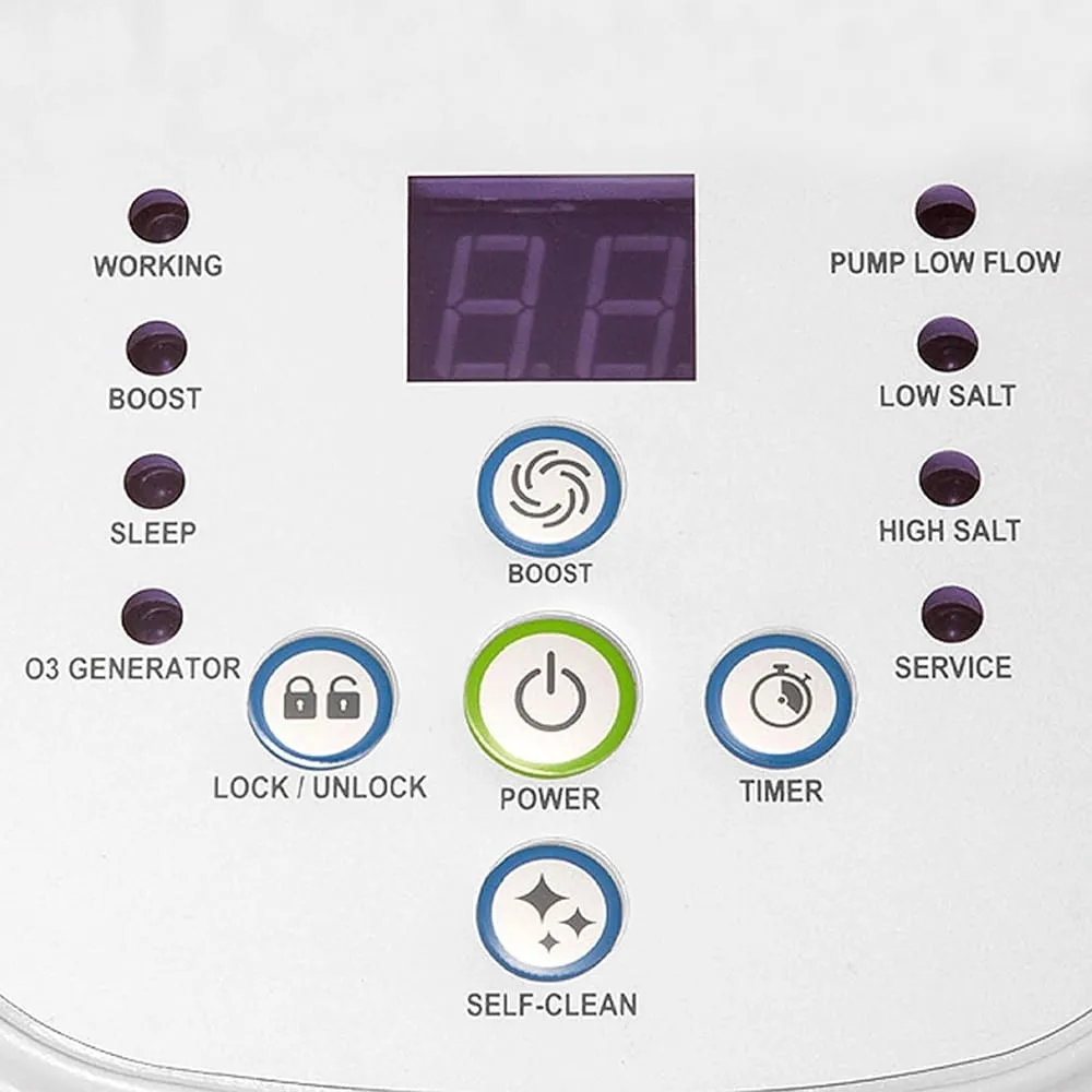Stav zařízení, průtok vody, úroveň slanosti i případné chyby signalizuje 7 LED kontrolek umístěné po stranách panelu.
