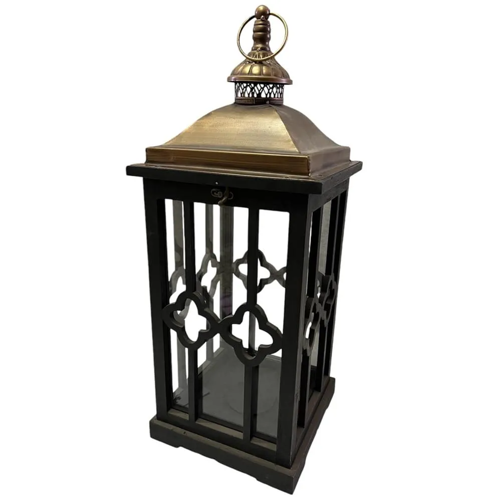 Střední dřevěná lucerna 23 x 23 x 57,5 cm černohnědá