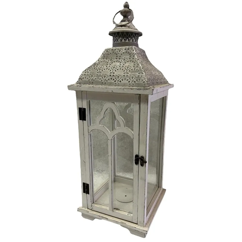 Střední dřevěná lucerna 23 x 23 x 61,5 cm bílá