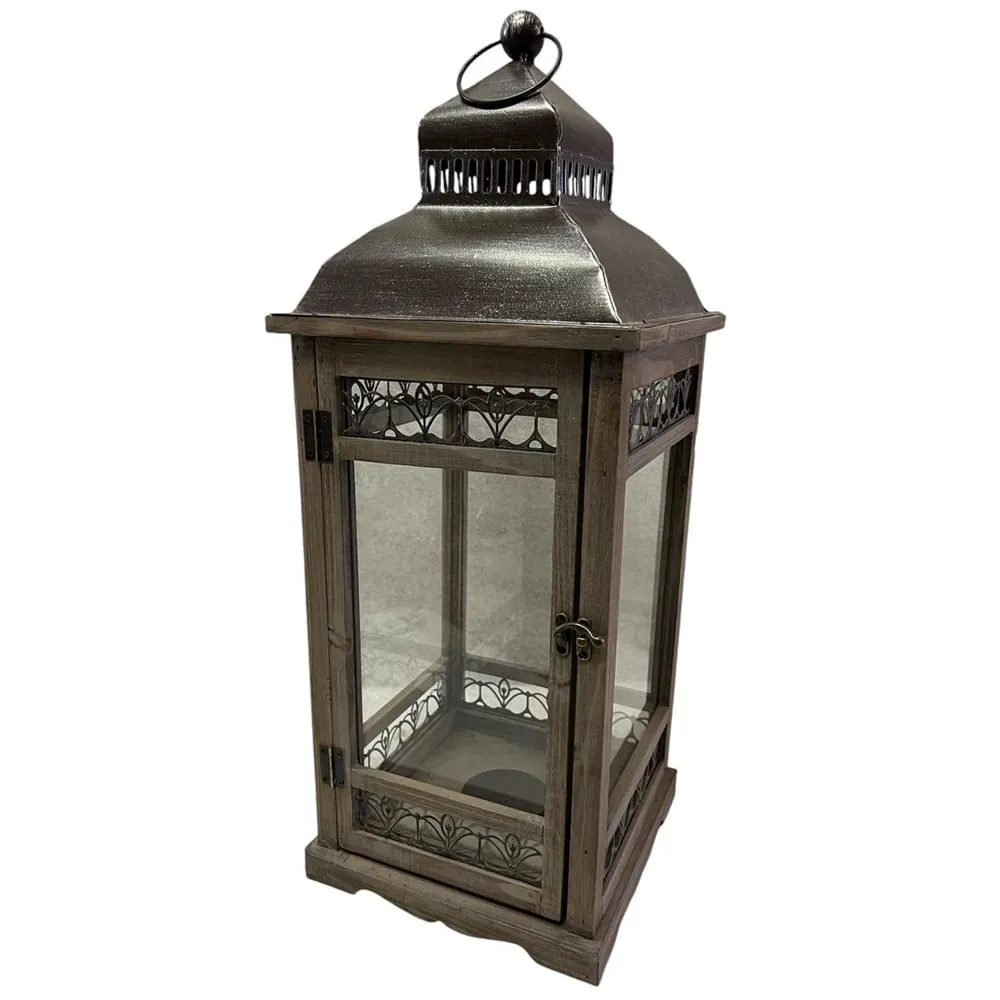 Střední dřevěná lucerna 24,5 x 24,5 x 62 cm šedohnědá