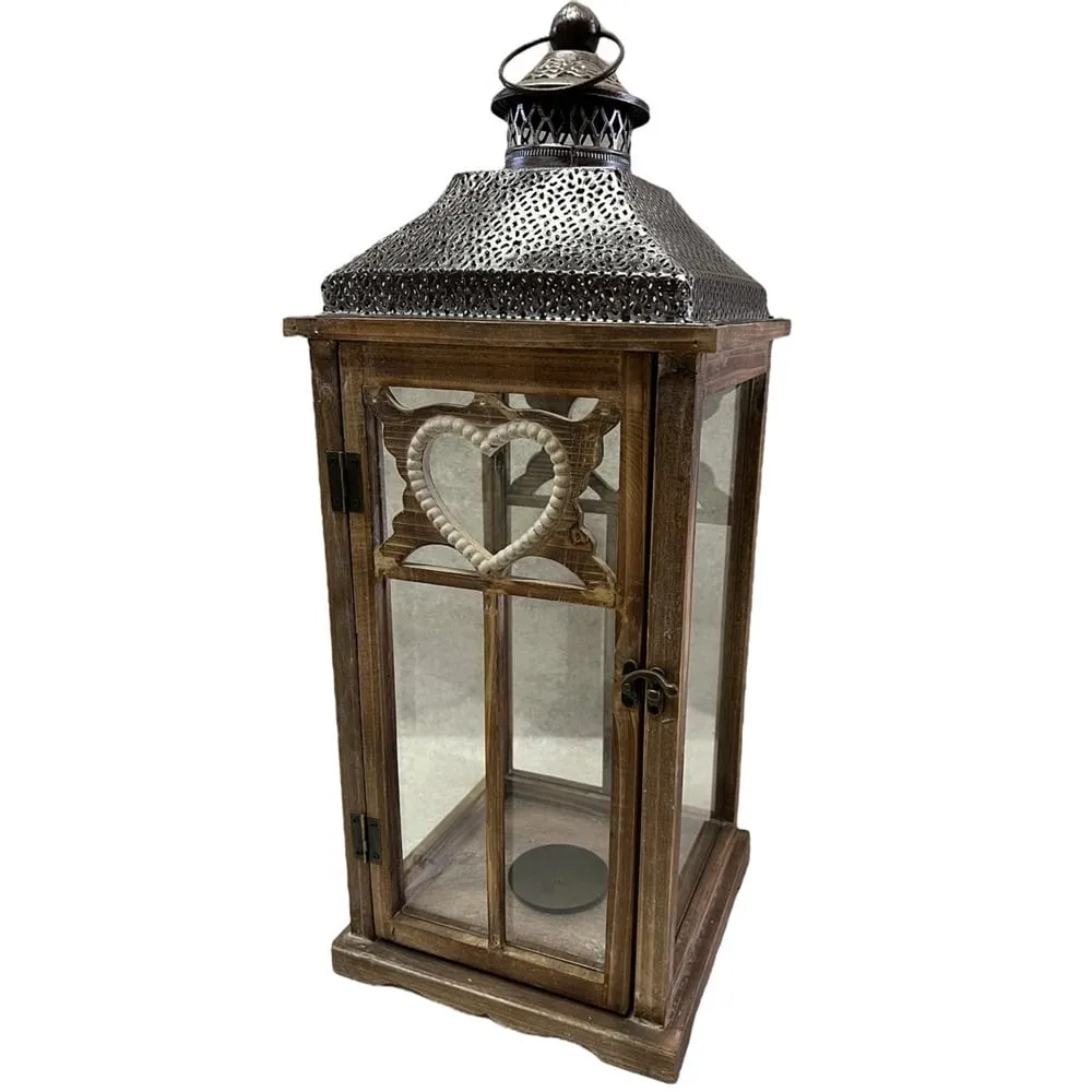 Střední dřevěná lucerna 24 x 24 x 60,5 cm hnědá